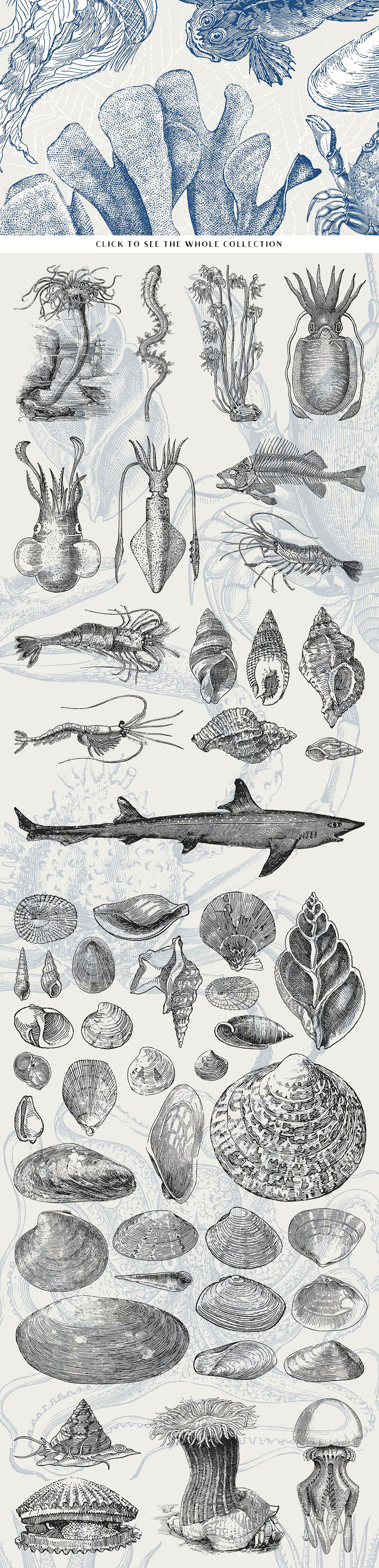 Introducing our Vintage Collection of 88 Nautical themed Illustrations – Available in Both PNG and Vector Formats. Our focus is to collect, restore, and repurpose old and forgotten artwork for the modern creator. Within this collection, you will find a wide variety of nautical themed illustrations from crabs to jellyfish, seashells to fishing hooks, and fish to squid. Click on the second image in the presentation above to see the full set!