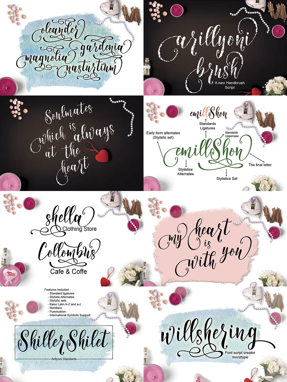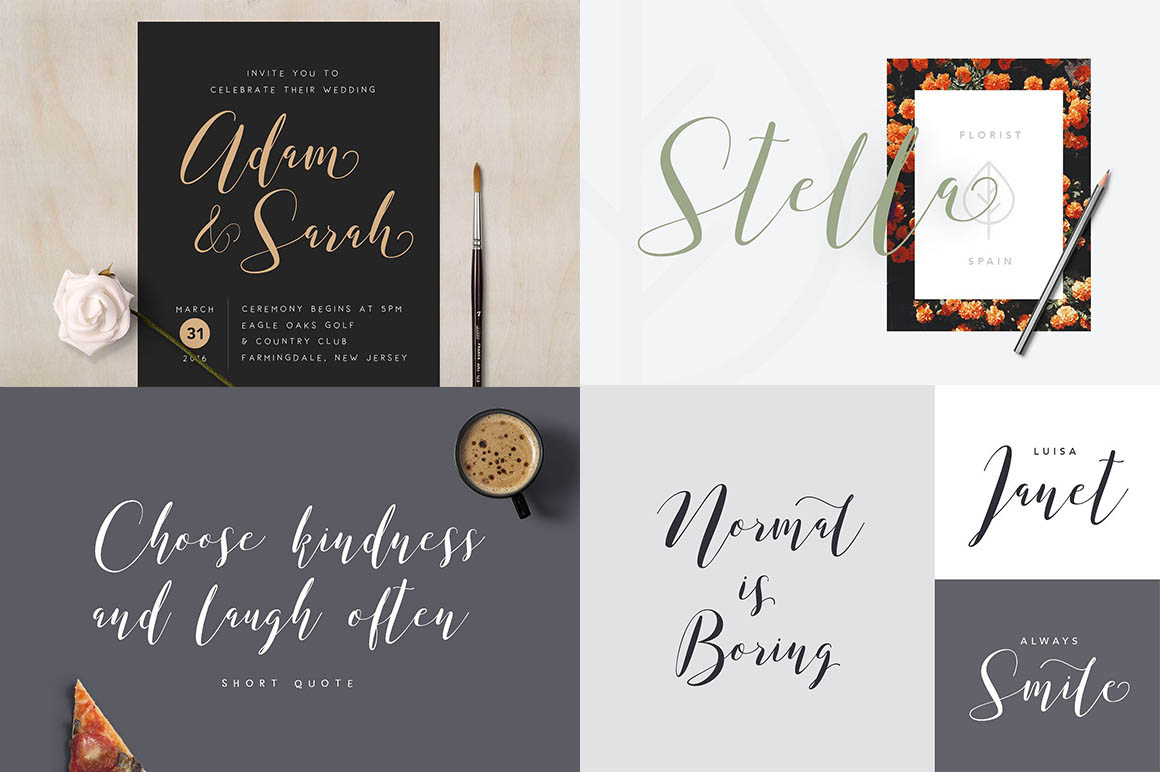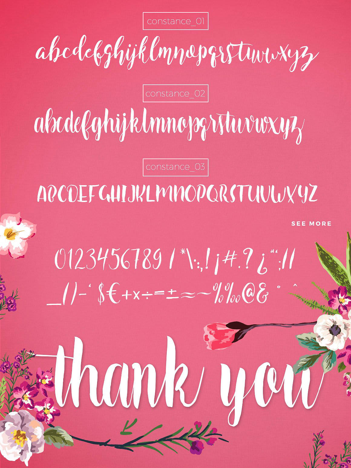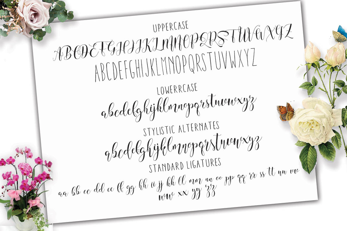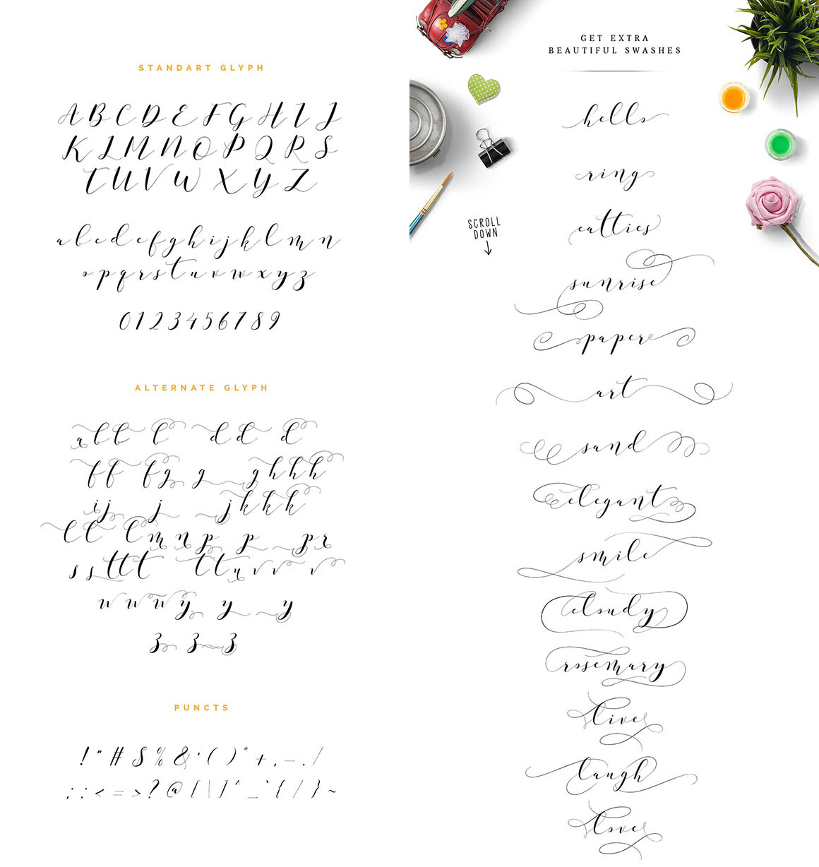 Flitte Script is a beautiful Script, It suitable for wedding invitation, greeting cards, T-Shirt, Logo or any design that you create.comes with a complete set of standard characters, Alternates, stylistic Alternates, Punctuation & international glyphs. Features: