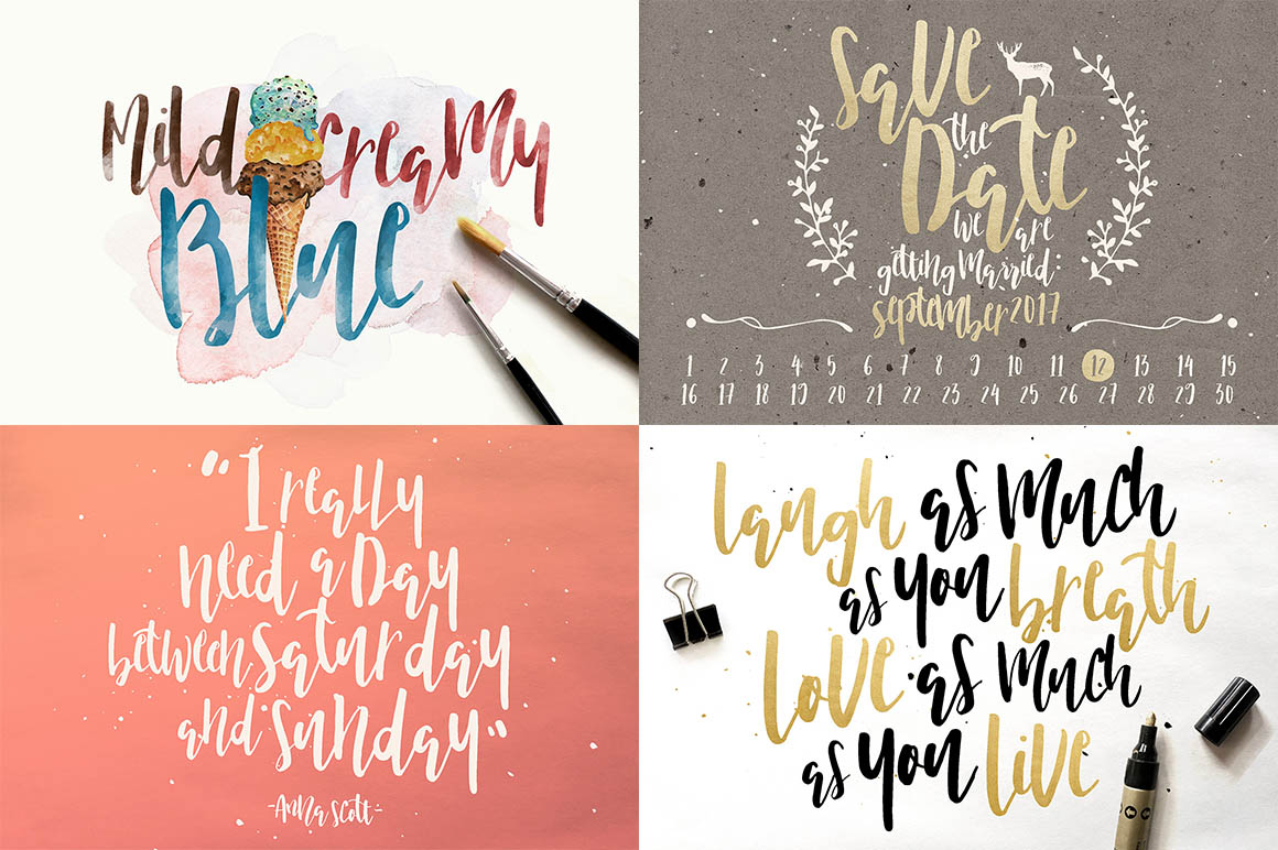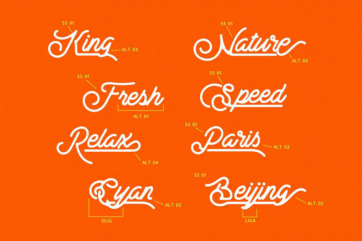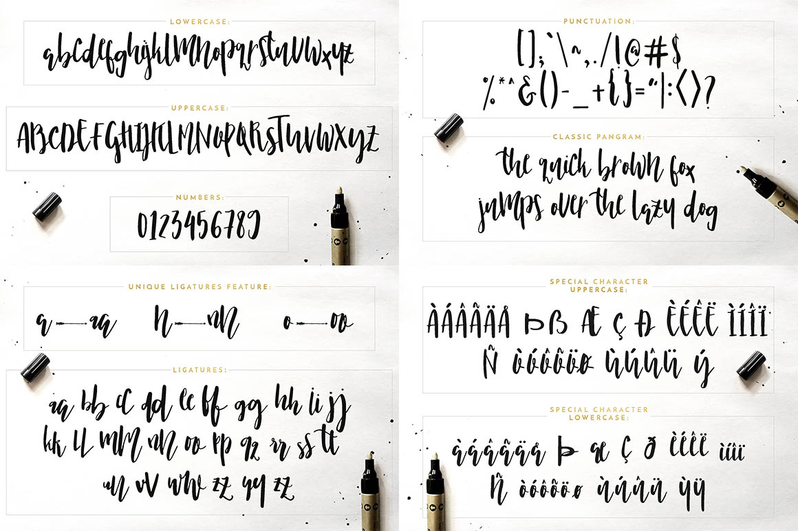 Ramblin Script inspired from ink & tints manual handdrawn brush to make a natural messy, with alternate glyphs and ligature of type could help you make a stylish design, and alternate character could bring a good display. Each glyph made manually one by one with very diligent and consistency. It also provided with clean look version that you can choose for simple and modern design. Suitable for any graphic designs such as branding materials, t-shirt, print, business cards, logo, poster, t-shirt, especially for nature photography and quotes.