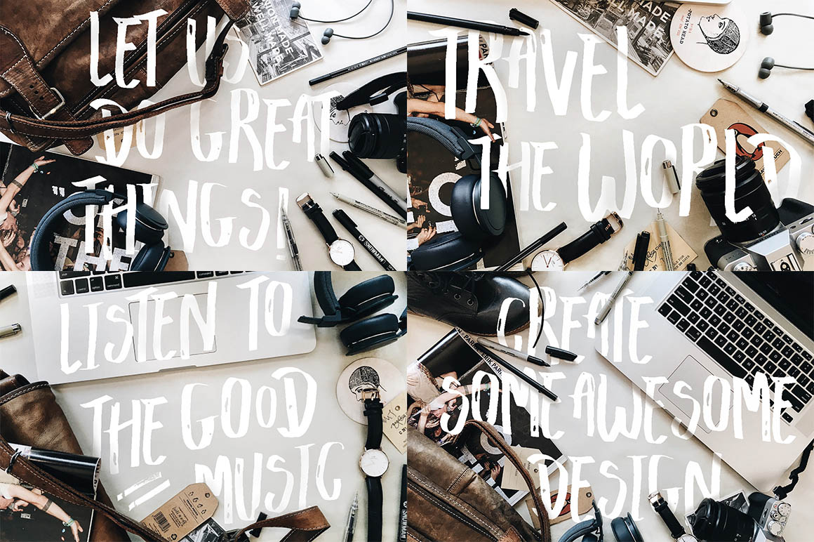 Into The Wild is a highly detailed painted handcrafted font. The typeface is strong, sharp and have a painted look feel. Suitable for digital lettering, branding materials, t-shirt, print, business cards, quotes, logo, poster, t-shirt, nature photography and applicable for any graphic design.