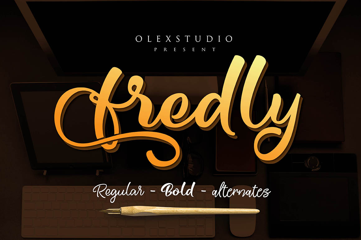 Fredly is a beautiful Script, It suitable for wedding invitation, greeting cards, T-Shirt, Logo or any design that you create.comes with a complete set of standard characters, Alternates, stylistic Alternates, Punctuation & international glyphs. Features: