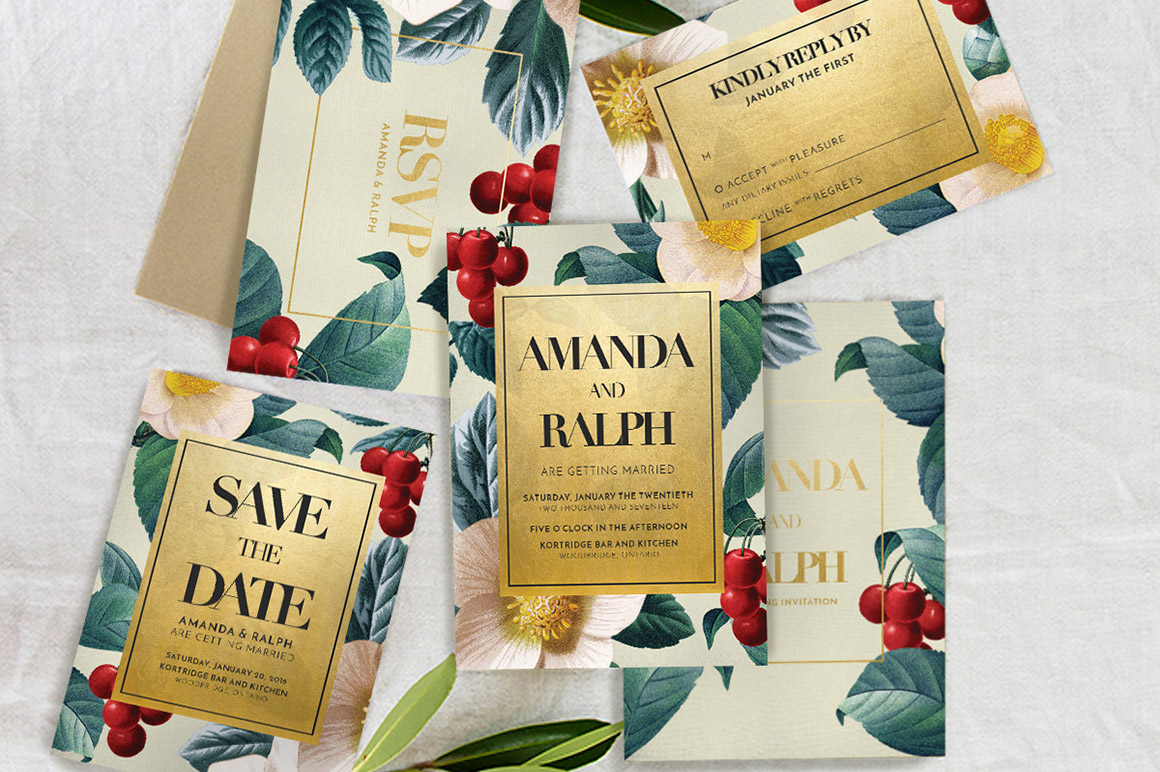 B23. Gold Floral Wedding Invitation by KlapauciusCo