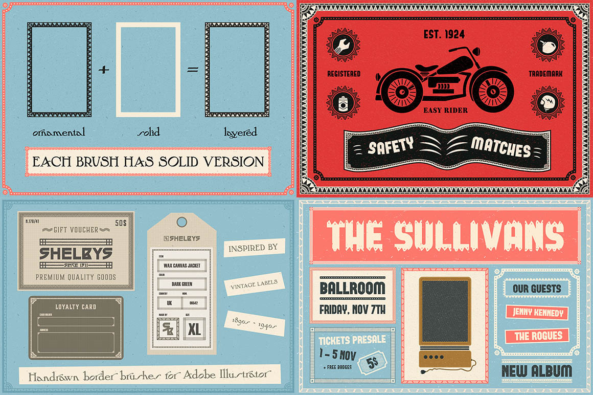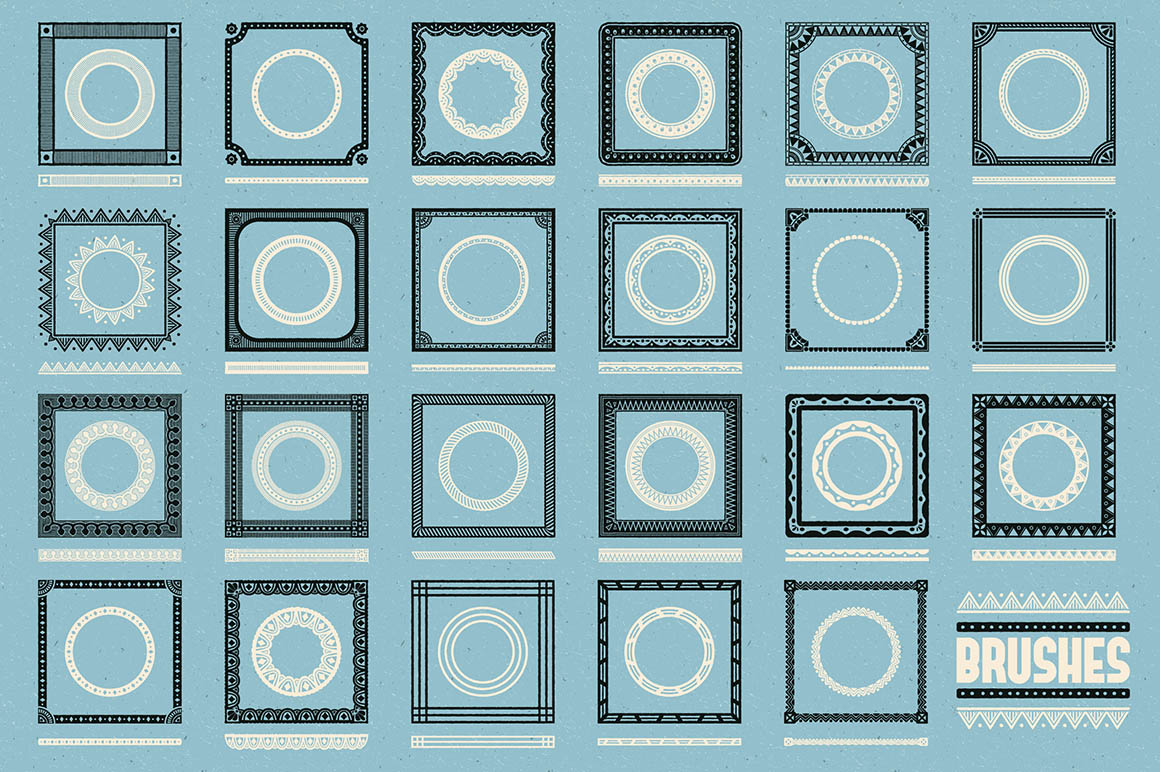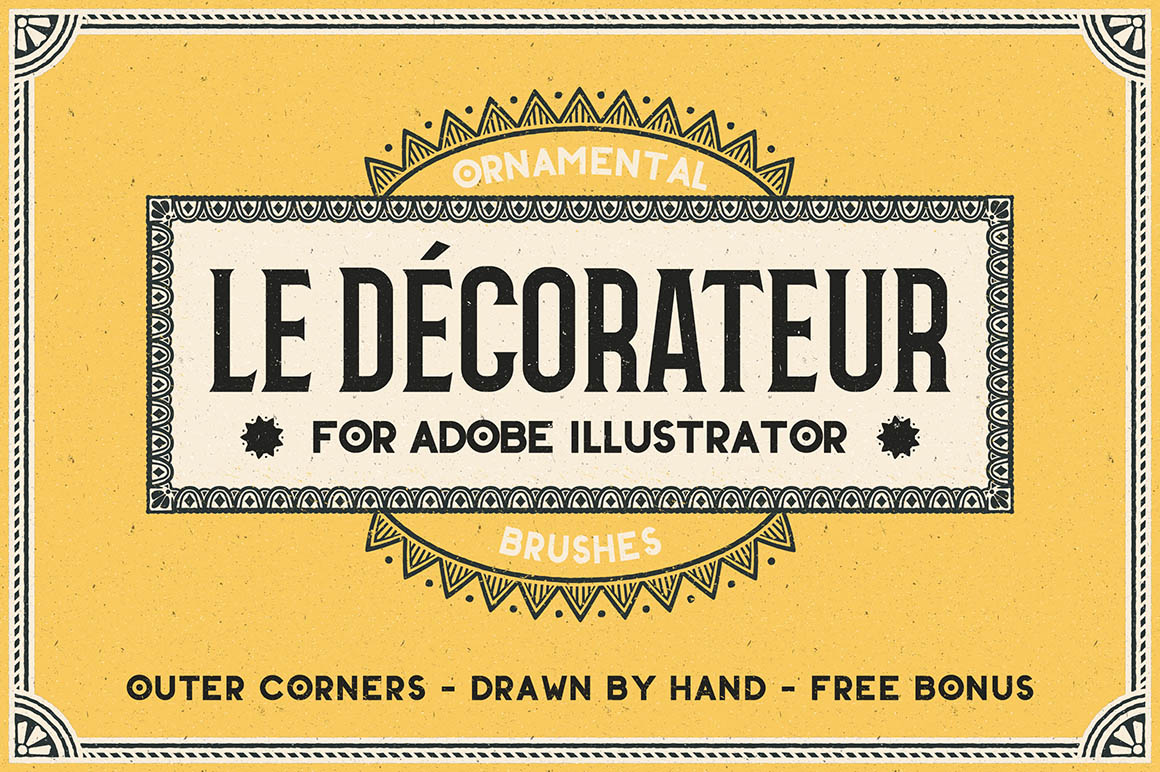 Le Decorateur is a pack of ornamental pattern brushes for Adobe Illustrator. Brushes have nice hand-drawn look. A few weeks ago, I bought a really helpful book containing a visual history of graphic styles. I really love it. And really love styles and ornaments of frames and borders used in print of the 1890s – 1940s period. I always wanted to make a collection of pattern brushes but I hadn’t had patience. Good pattern brush needs time. Have you ever imagine how difficult is making of pixel perfect hand-drawn patterns? 🙂 All these tiny details. You need to test it hundreds of times. Every little gap causes imperfection. Well, I finally did it! And actually, I had a fun of making it, because I know that you will appreciate quality!