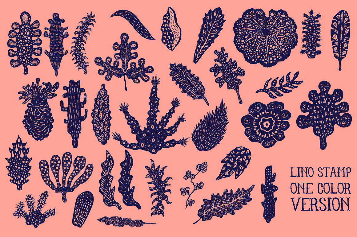 - 30 these elements (+2 bonus) in one color with lino stamp look