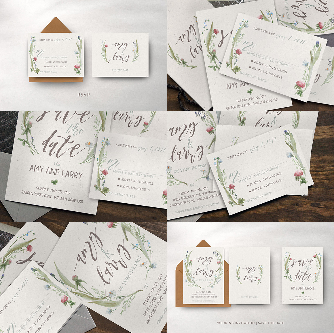 Here’s a watercolor illustrated wedding invites & RSVP in a sweet, soft color tone that you can use for your wedding celebration! In the package, there’s an invitation, save the date & RSVP card. Every detail is very easy to edit, so you can simply create your own card based on the existing design. This set comes with color highlighted & well arranged PSD layers so you can edit the whole text right away. Watercolor Flower Wedding Invitation Features: