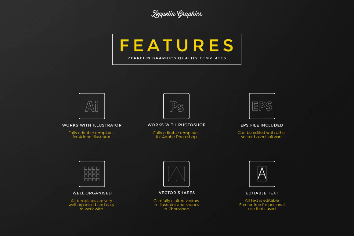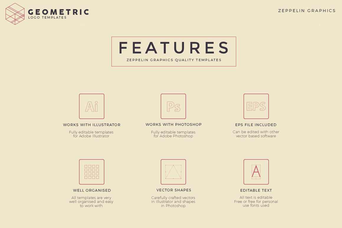 - All logos are all placed in 4 files (3 with 50 logos each and one with 100) available in PSD, AI and EPS formats. Very well organised.