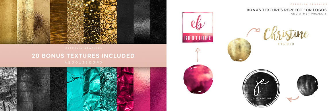 We continue our logo series with this great new collection of fresh mousemade feminine and minimalistic logo templates! We try to offer only high quality items that will be useful and easy to use for your projects. We put a lot of thought into this kit because we wanted to offer a large diversity of logos so that you will have the templates that you need for your projects all in one set! The logos all come as presented, in color but everything is fully editable, so you can edit the shapes, the text, re-size or change color! And on top of that we included 20 amazing high resolution textures that you can apply to any of these templates and we guarantee you will end up with amazing results! We also included video tutorials on how to add the textures in both Photoshop and Illustrator. Please keep in mind that in these tutorials I was working with some different textures from another kit but it works the same no matter what texture or image you wish to use! With more than 200 vector elements included as part of the logos you can always start mixing and create a lot more templates for your own projects! Now that’s just a lot of fun!