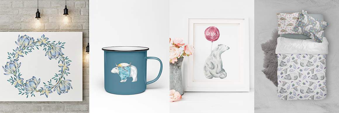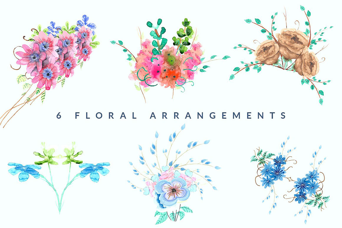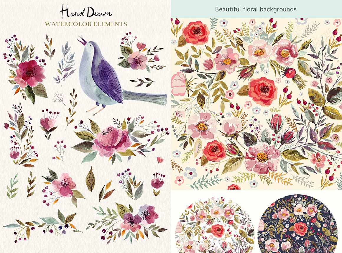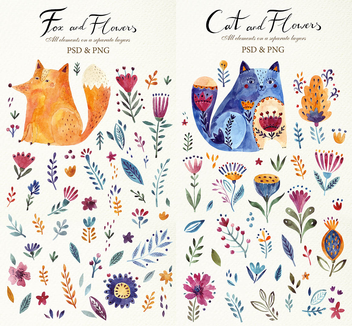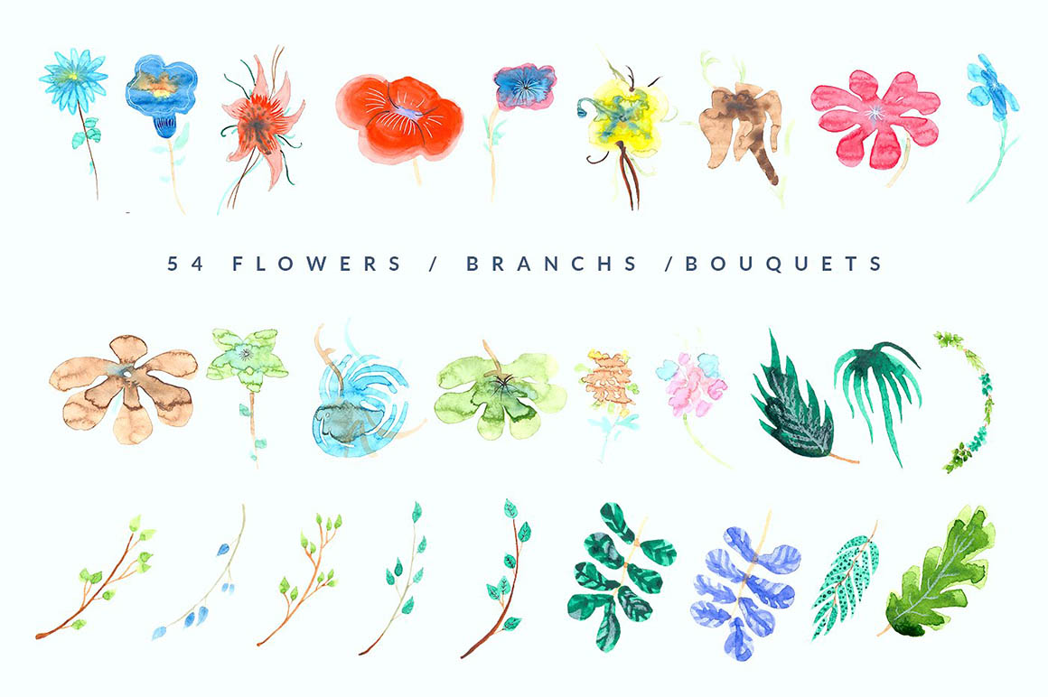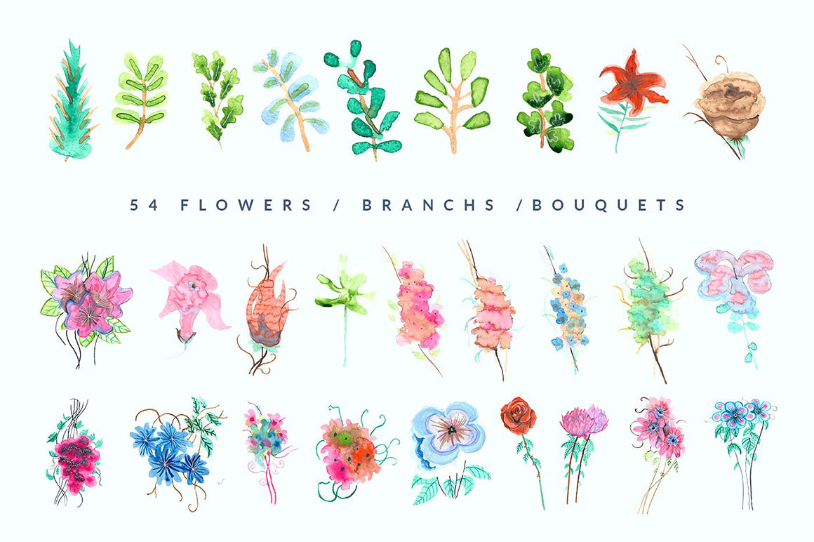- WATERCOLOR OBJECTS [ It’s 72 watercolor elements : rabbit, bears, flowers, florals, penguin and other elements ];
