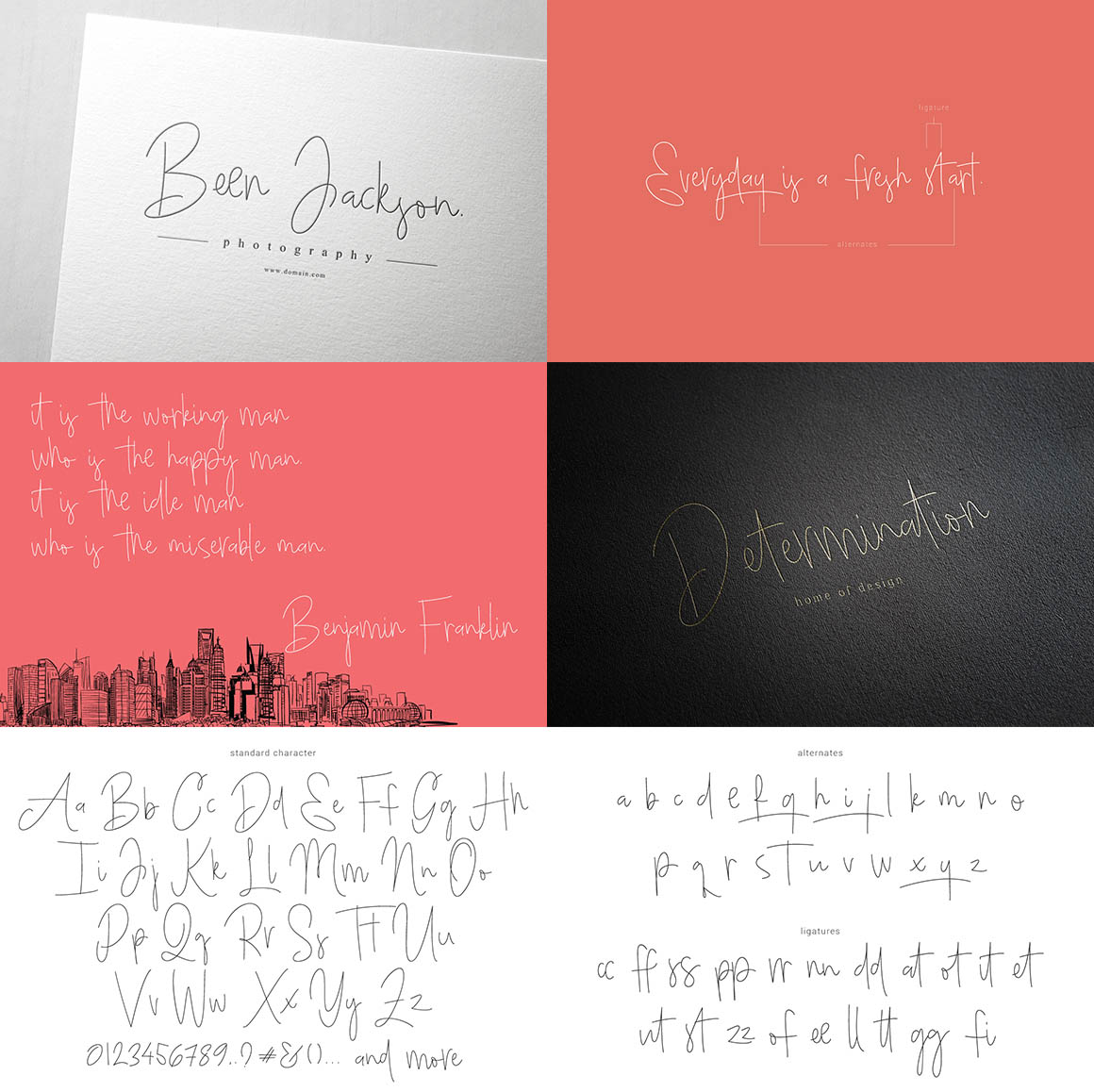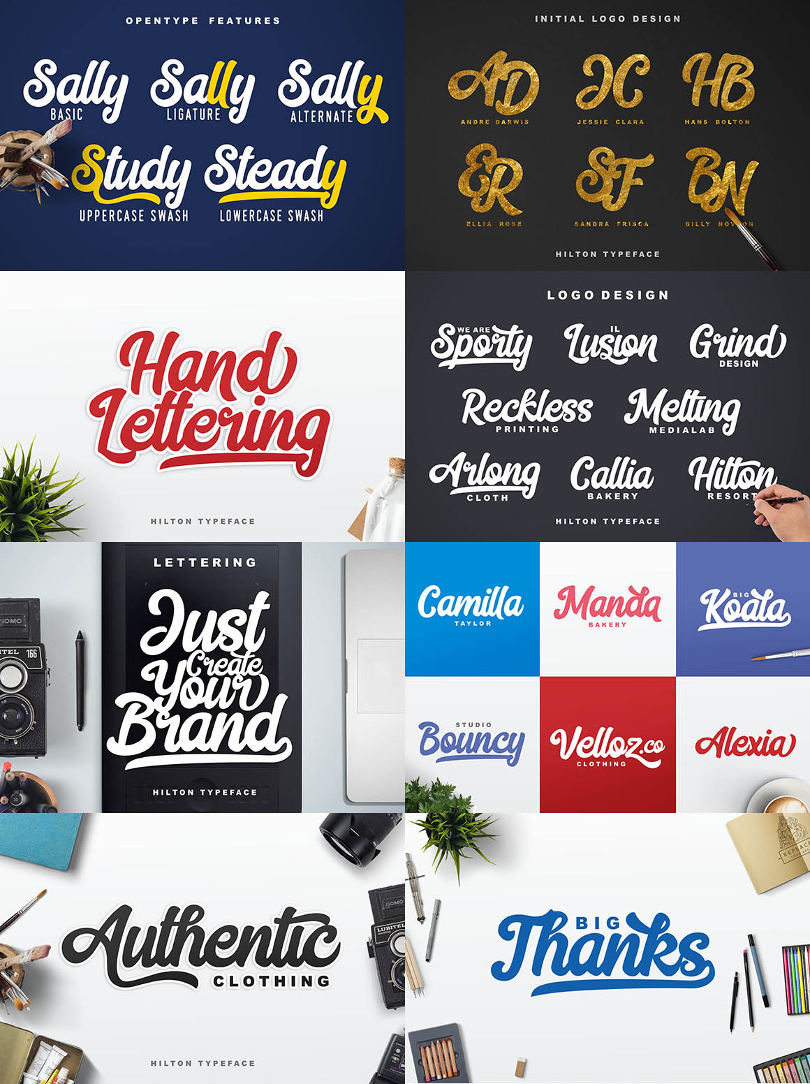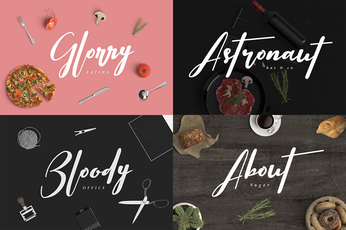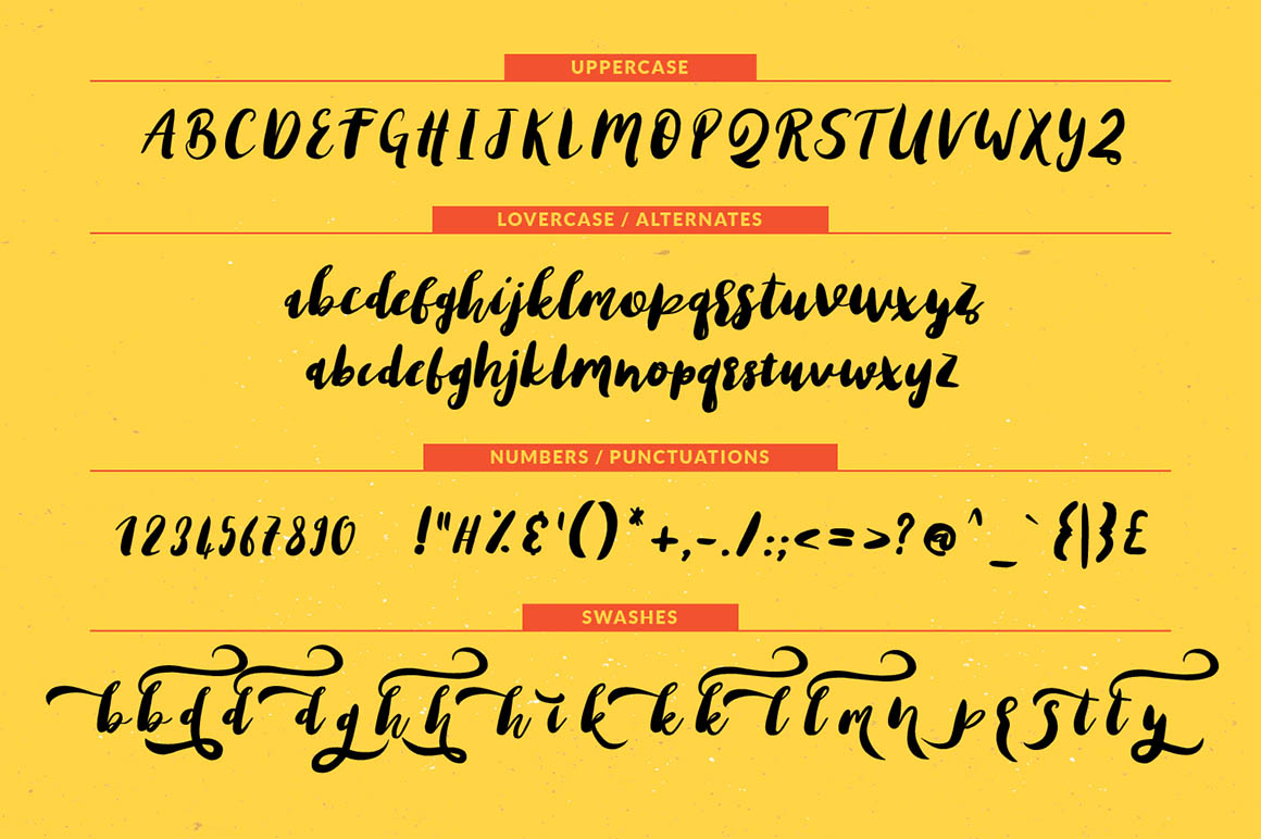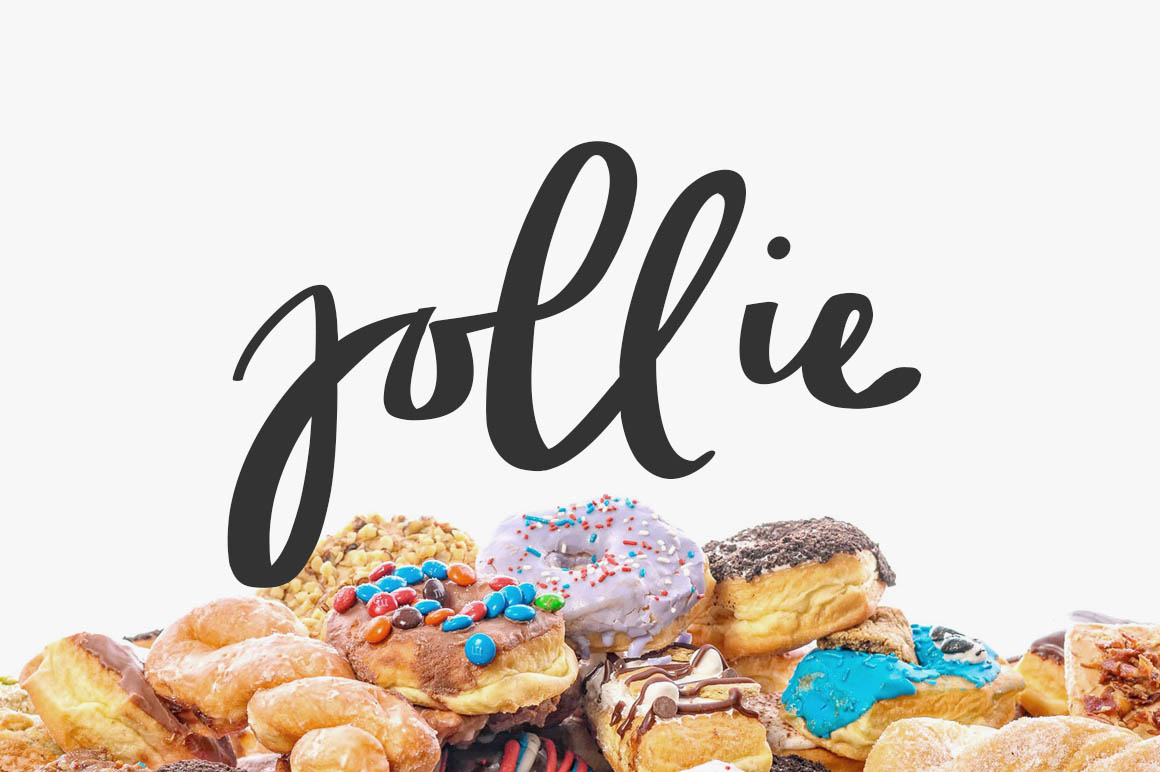 Give your designs an authentic handcrafted feel. “Jollie Typeface” is perfectly suited to logo, stationery, branding, typography quotes, magazine or book cover, website header, clothing, branding, packaging design, restaurant and more. Included Stylistic Alternates