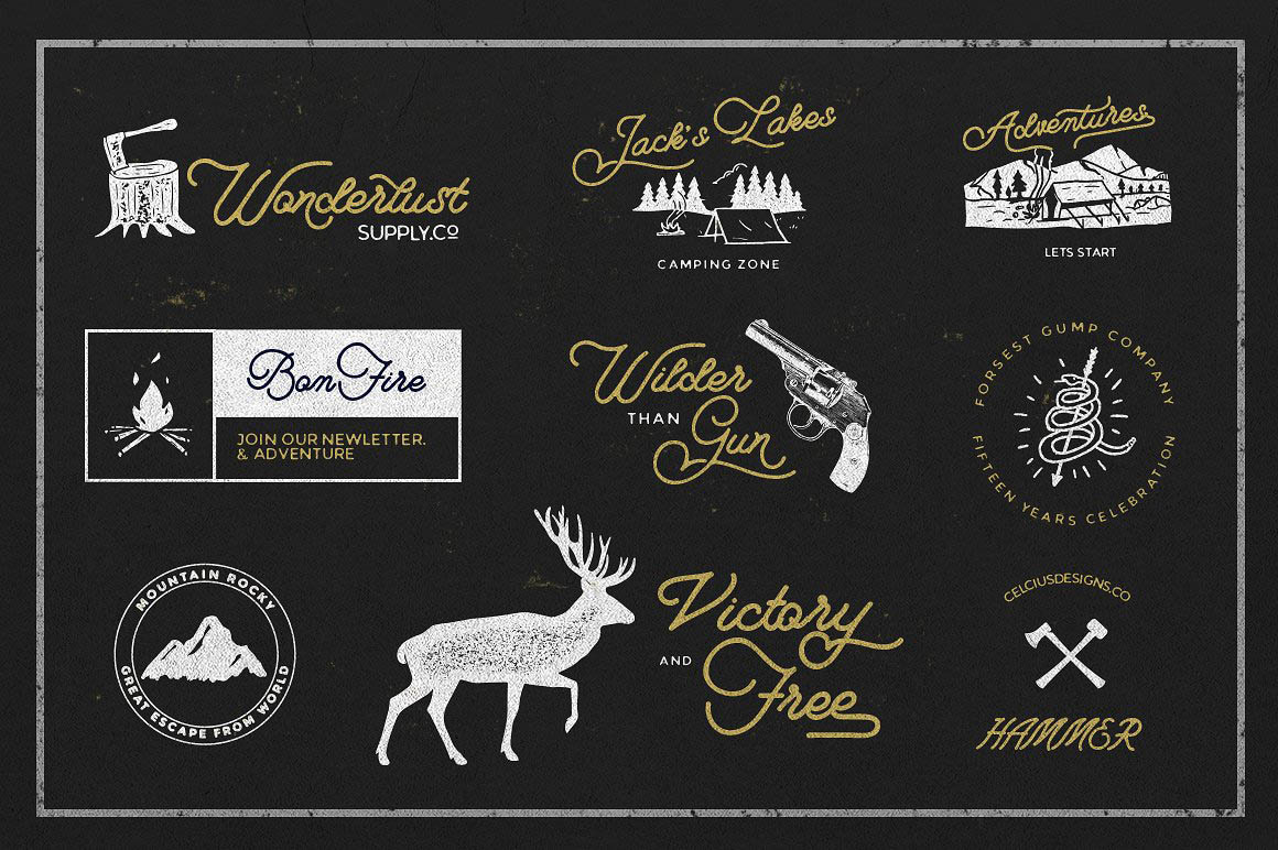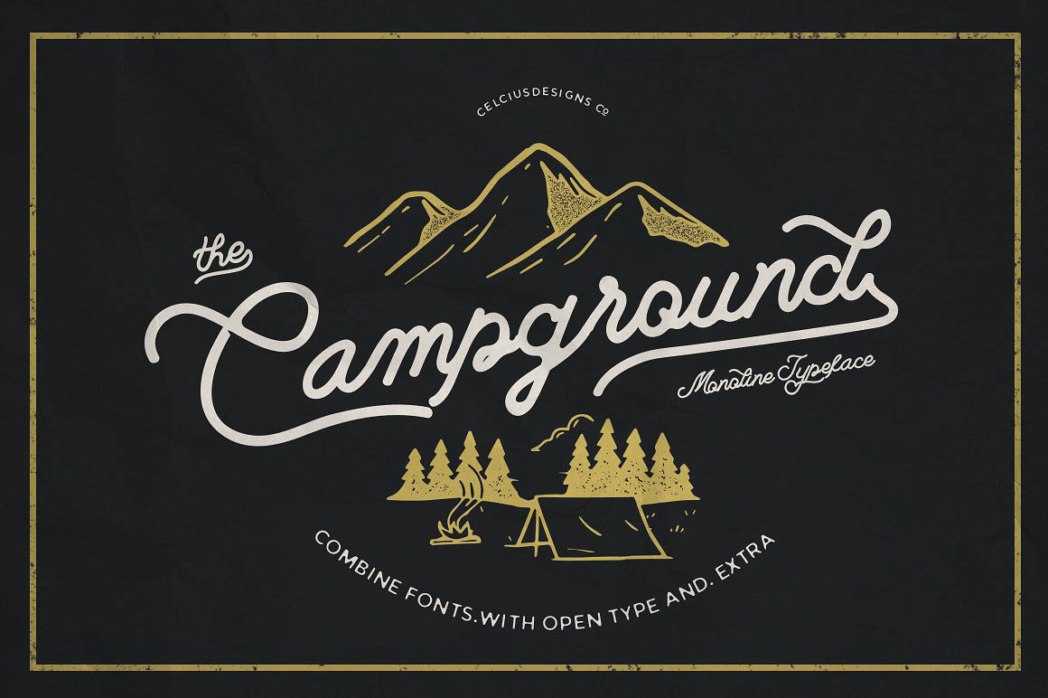Proudly presents our latest product ” Campground & Camp Press fonts. Two fonts with script & sans styles. Insipired from nature, adventure and vintage typeface, its great for logo, clothing brand, vintage looks, wedding, and more. Combine with Bonus badge & illustrations.