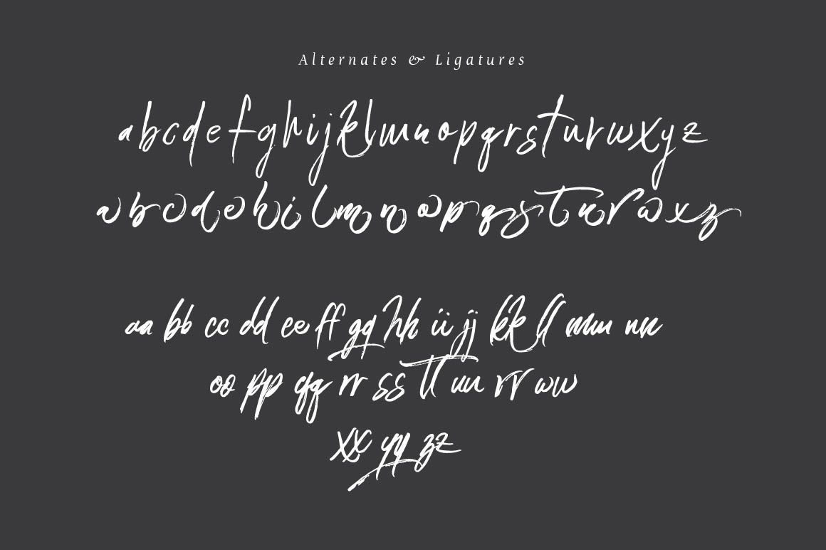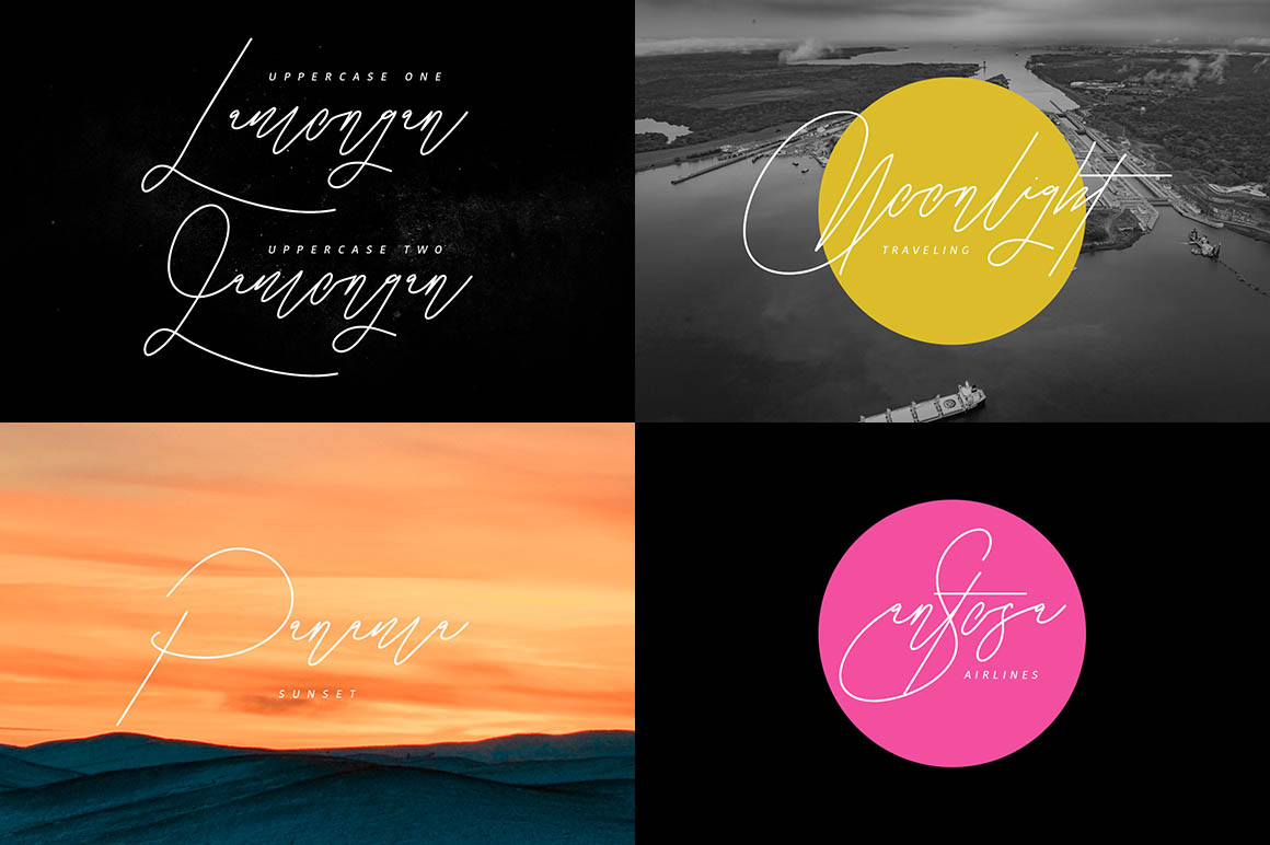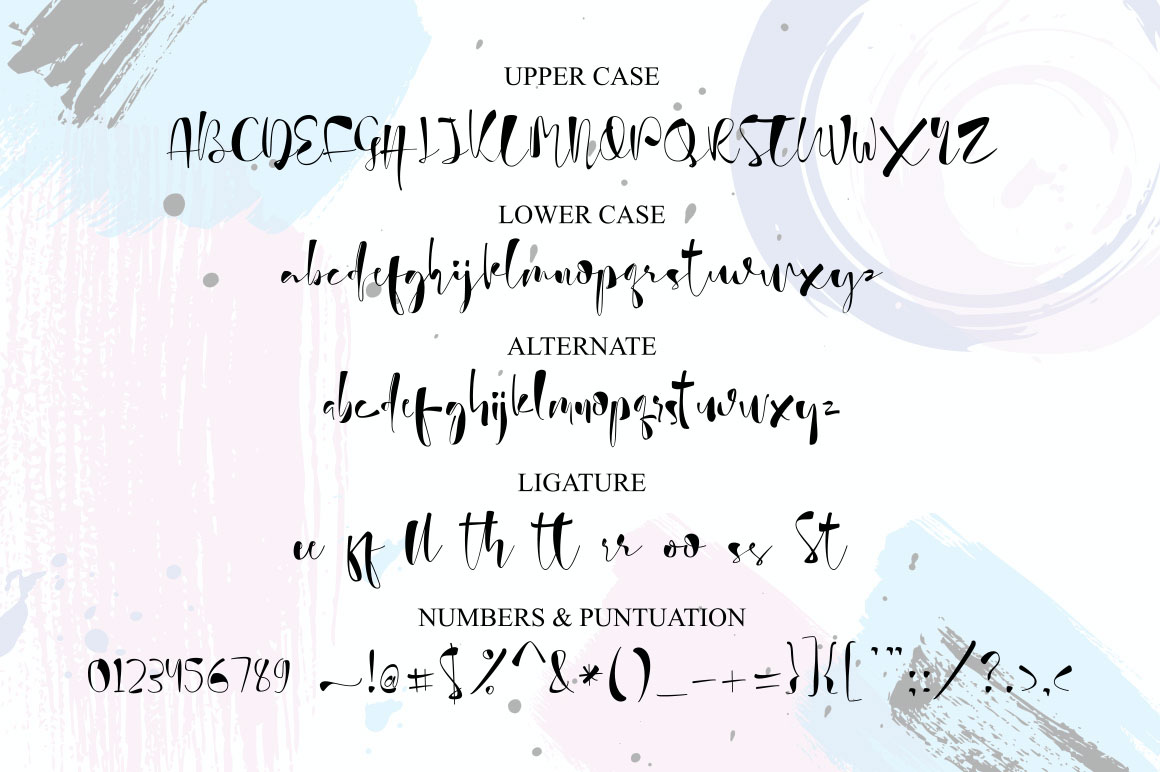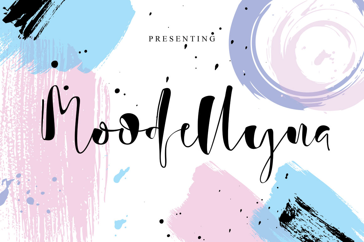 Presenting to you a Moodellyna Script, a hand lettering moodie calligraphy, Moodellyna Script creating the natural font for your designs beyond a standard font and include Ligatures (letters custom). You are very welcome to use it for various purpose like wedding invitations, logos, signatures, t-shirts design, cards, printed quotes, product packagings, headings, blogs, graffiti, website headline and more. Enjoy this exclusive set and explore your fantastic design. Includes • Moodellyna Script (an all-lowercase and uppercase scripts) • Numbers + punctuation • Ligatures (letter custom) • Moodellyna Alternate has special feature ‘end swashes’