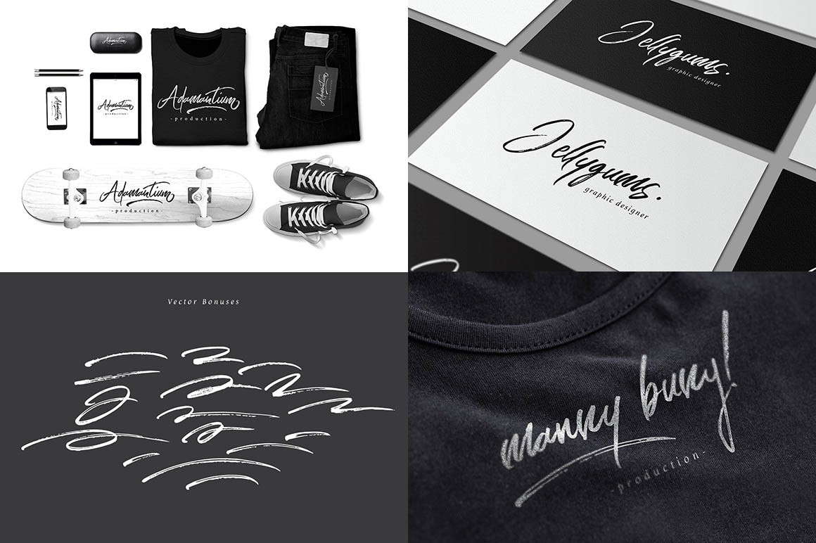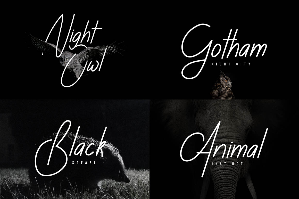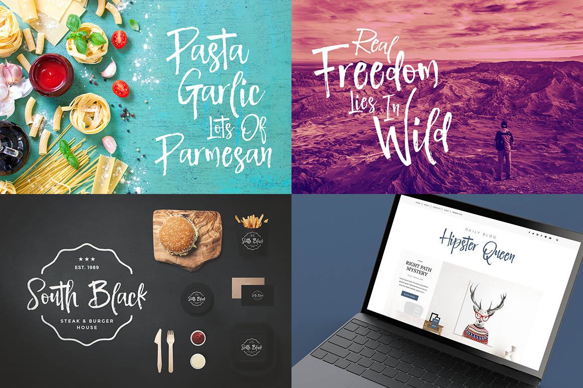 Give your designs an authentic handcrafted feel. “Rusa Hitam Font” is perfectly suited to signature, stationery, logo, typography quotes, magazine or book cover, website header, clothing, branding, packaging design and more.