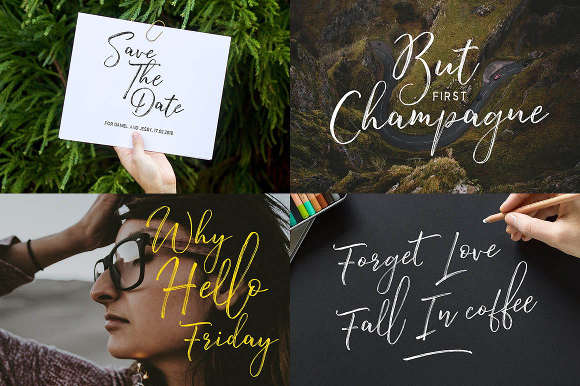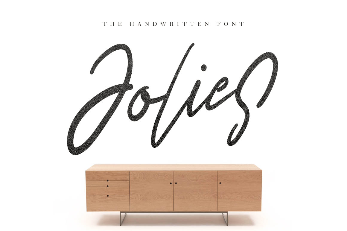 Jolies is handwritten modern stylish fonts, combines from classic to modern typeface with a clean design baseline. Can be used for various purposes, such as headings, signature, logos, wedding invitation, t-shirt, letterhead, signage, lable, news, posters, badges etc.