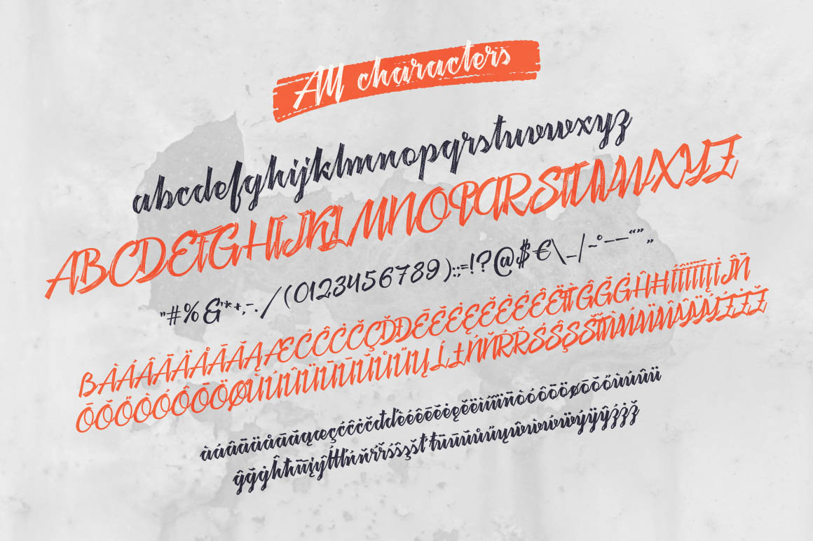 Hello! Presenting a calligraphic font with natural scratched texture effect. It’s a script with connected letters, lots of characters including West European languages support and few ligatures.