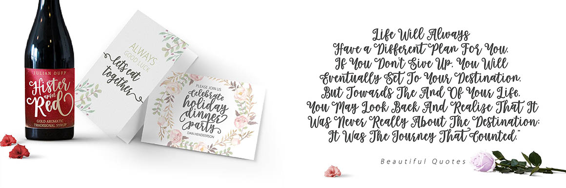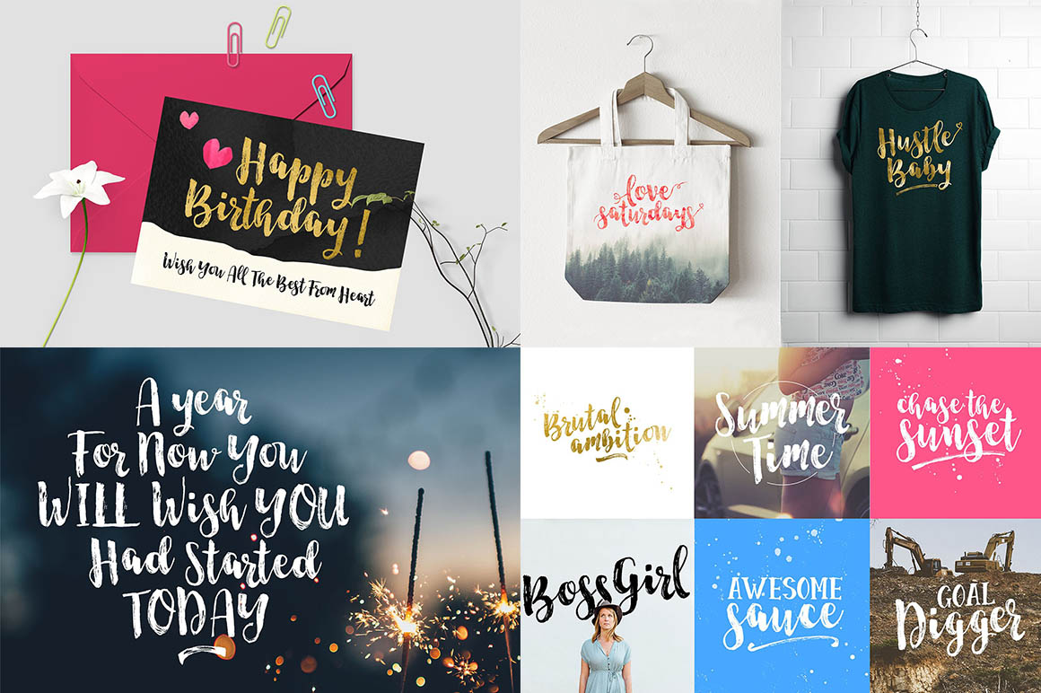 Give your designs an authentic handcrafted feel. “Gamot” is perfectly suited to stationery, logo, typography quotes, magazine or book cover, website header, clothing, branding, packaging design and more.