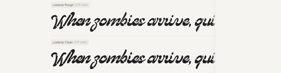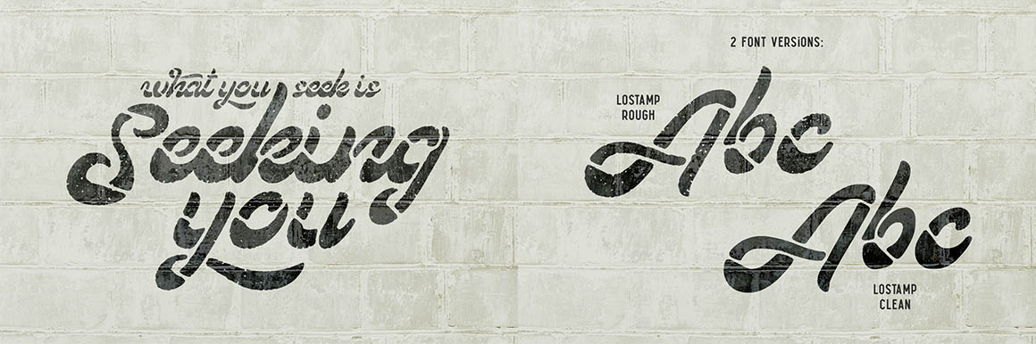 Hi! Here is a grunge variation of my “Loftype” font named “Lostamp”. As you can see it has a stencil cuts and two versions with rough and clean contours. All OpenType features, like alternates, ligatures, swashes also exists in this fonts.
