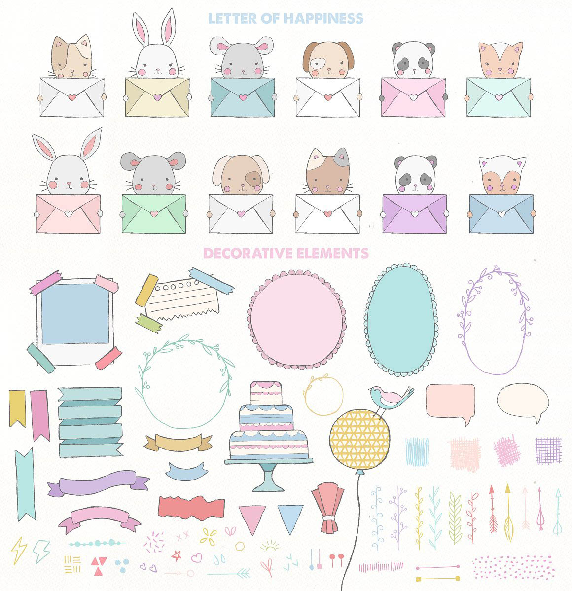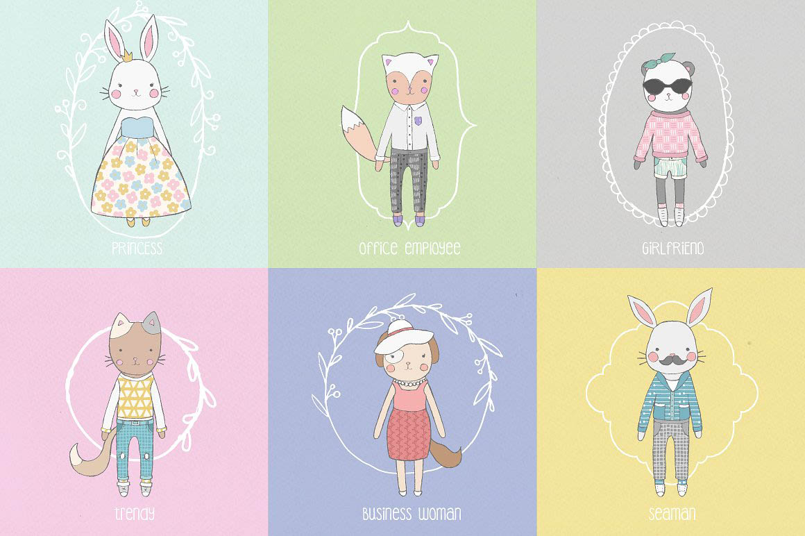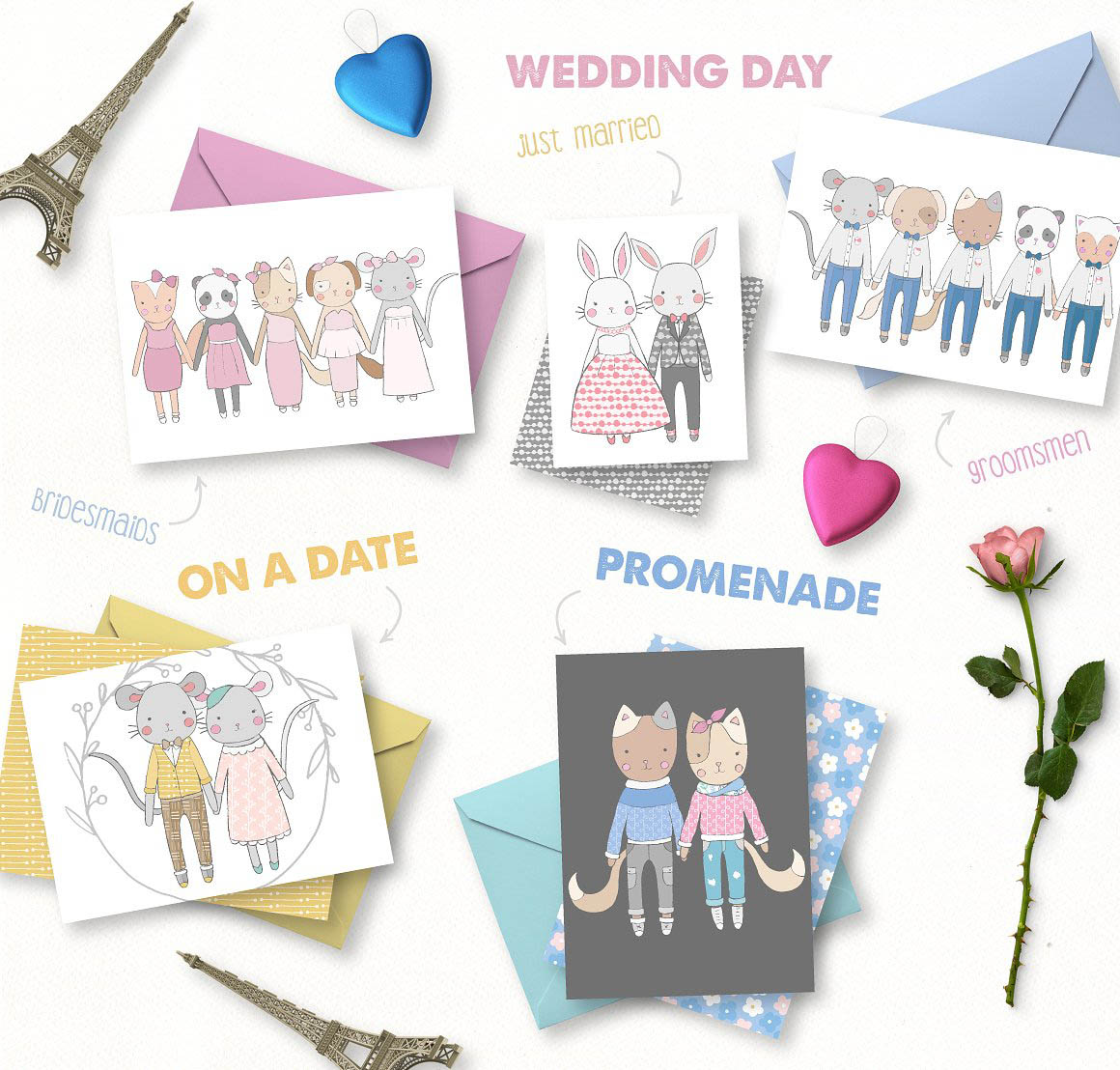 It’s just love story! It is 12 characters who create their own history. Be sure to click on the image to see all the cuties. Create wedding invitation with bridesmaids and groomsmen. Or decorate her room cute rabbits. This package includes elements that will help you in your design: flowers, decorative elements, patterns, frames and florals. Make a card for a friend or a birthday invitation. Make your character that looks like you or just use for your small business.