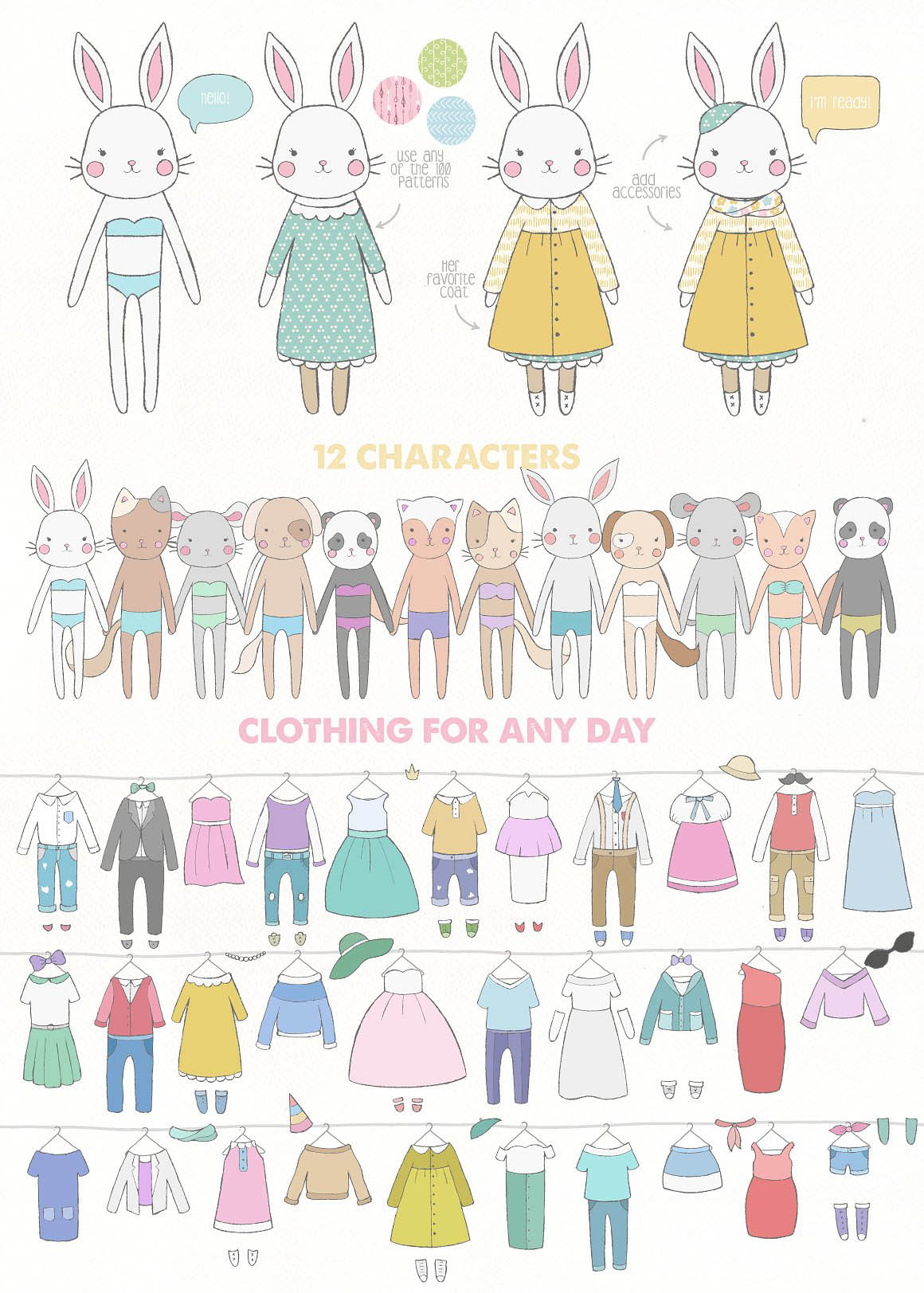 - 44 Animals and Clothes [ rabbit, bear, raccoon, skunk, deer, moose and other ];