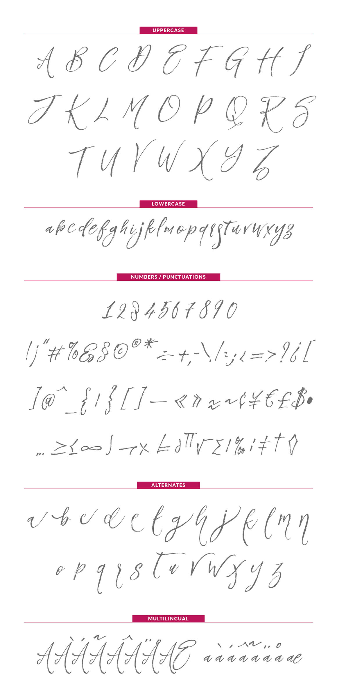 Ravishing is another multi-purpose font that you can use it for many different type of projects and designs such as fashion, stores, cafe and so on… Please see great for section to find out more. GREAT FOR; Store, Restaurants, Menu, Blog pages, Web pages, T-shirt designs and etc.. WHAT’S INCLUDED? Uppercase, Lowercase, Numbers and Symbols, Multilingual Support, Pua Encoded, OTF and TTF. Fonts that are fully accessible via character map and other software using our tutorials are known as “PUA Encoded”.
