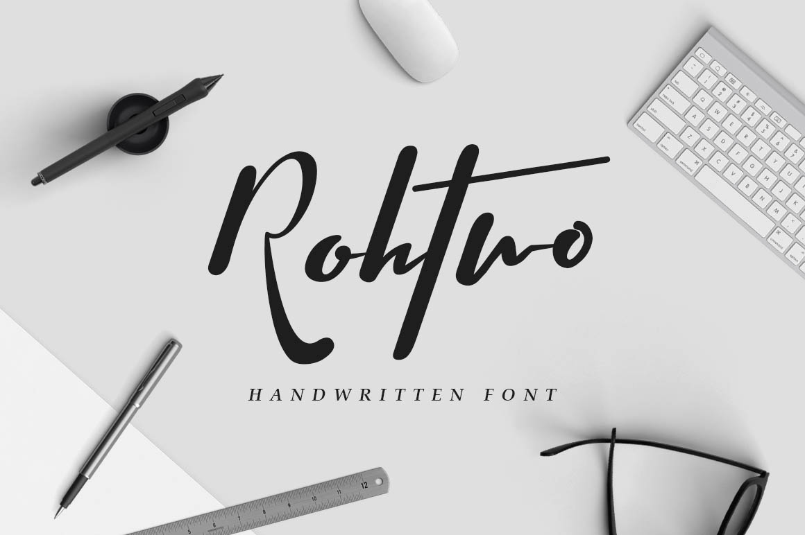Give your designs an authentic handcrafted feel. “Rohtwo” is perfectly suited to signature, stationery, logo, typography quotes, magazine or book cover, website header, clothing, branding, packaging design and more. Included Stylistic Alternates.