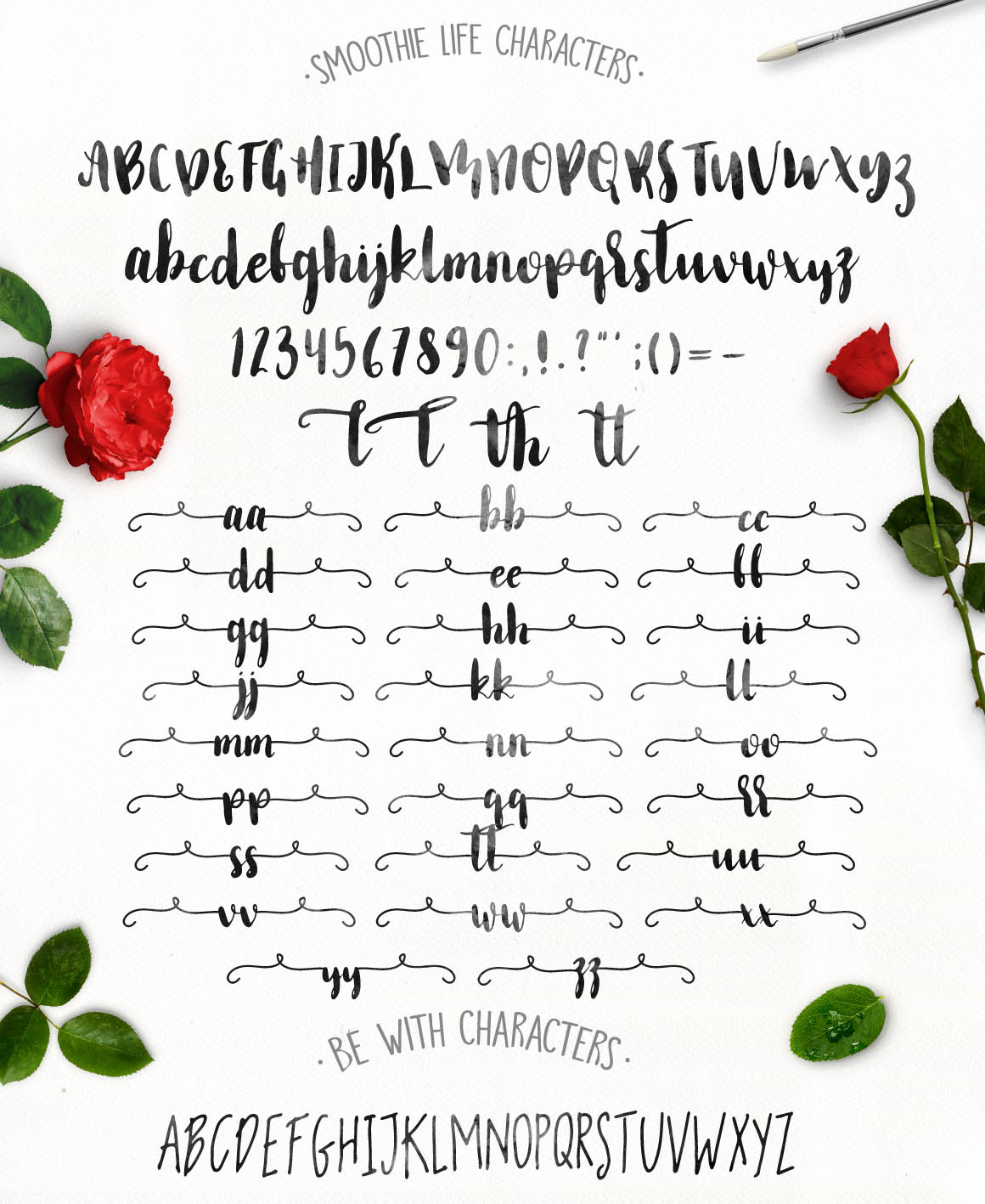 Introducing: Connoisseurs Typeface is a handbrush. The style of handwriting and irregular but still elegant, and you will enjoy to use this font style. Connoisseurs is perfect for branding projects, homeware designs, product packaging – or simply as a stylish text overlay to any background image. Fonts are provided in TTF & OTF formats. I recommend installing the TTF files, and the OTF only if necessary. There is no difference in function with either format. Ligatures • Are also available for several lowercase characters (double-letters which flow more naturally). These are only accessible via software with opentype capability or a glyphs panel, e.g. Photoshop/Illustrator.
