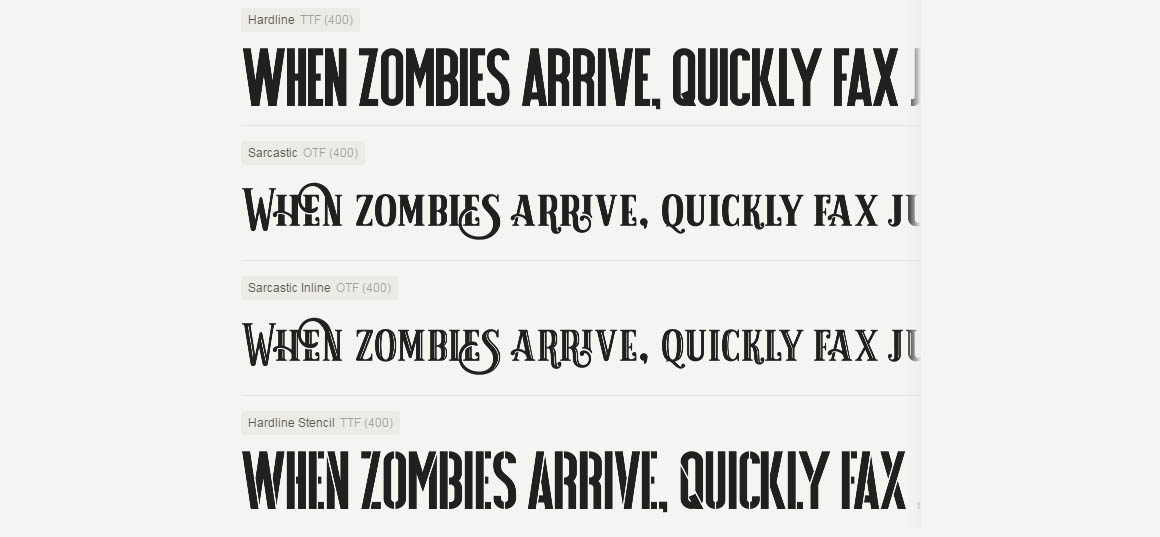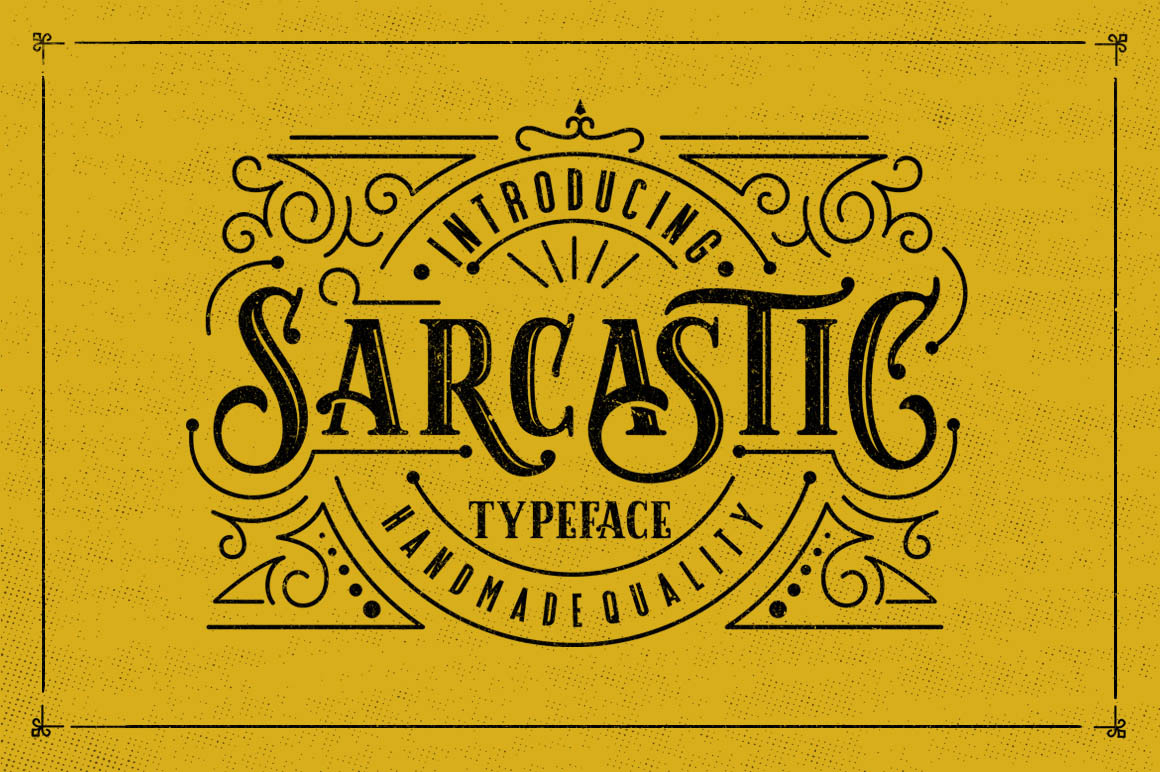Sarcastic is a display font made by hand and inspired by classic posters. Sarcastic comes with uppercase, lowercase, numerals, punctuations and so many variations on each characters include opentype alternates, common ligatures and also additional swash to let you customise your designs. Perfect to use for Logotype, Letterhead, Poster, Apparel Design, Label and etc. Also supported PUA encoded. Simply copy and paste the alternate characters using the Character Map (Windows), Font Book (Mac) or a software program such as PopChar (for Windows and Mac).