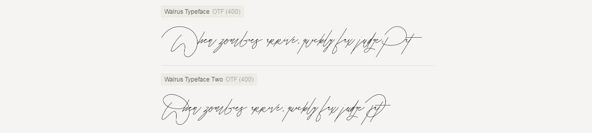 Give your designs an authentic handcrafted feel. “Walrus” is perfectly suited to signature, stationery, logo, typography quotes, magazine or book cover, website header, clothing, branding, packaging design and more.