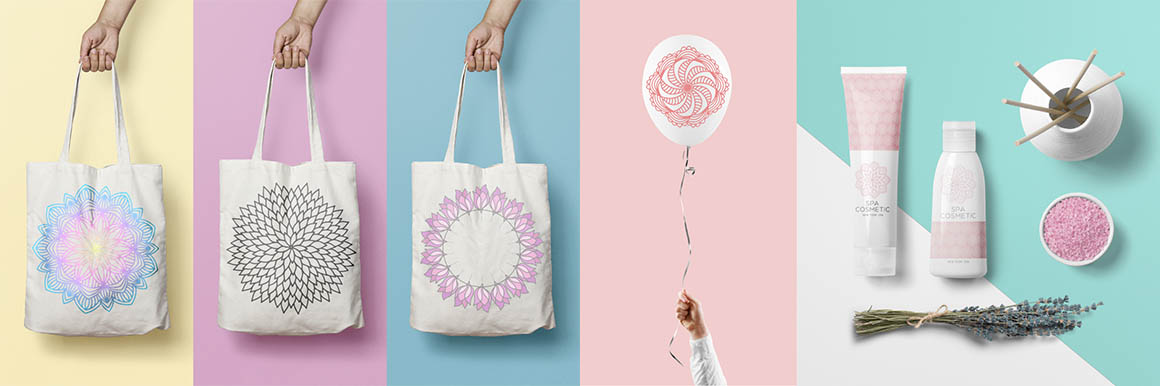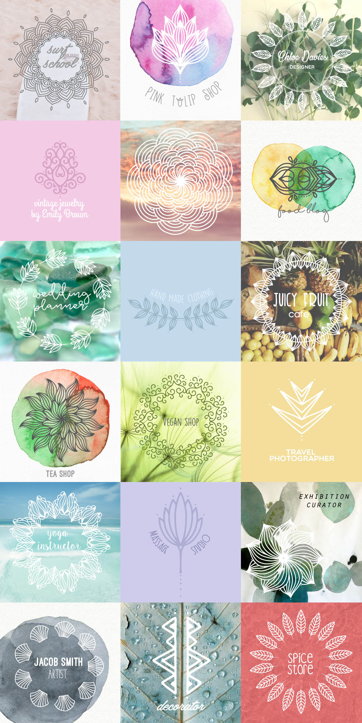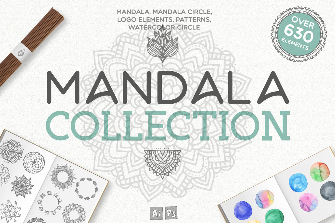 In this magical collection of more than 600 mandalas for every taste. Be sure to click on the image to see all toolkit. Are you a vintage jeweler or a wedding planner? Or if you have a surf school or a flowers shop? Maybe you a yoga instructor or a decorator? Create a logo or branding of their dreams. You can easily combine mandala and watercolor circle. Or simply add mandala circle on your photo.