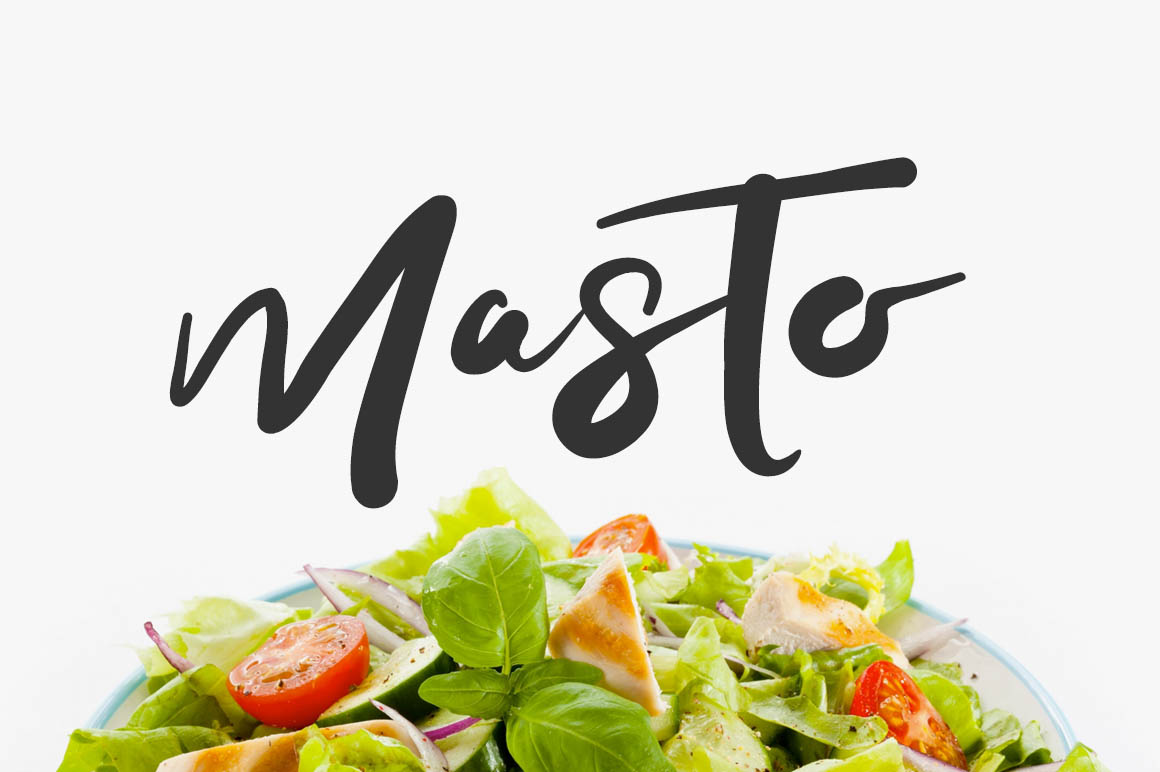 Give your designs an authentic handcrafted feel. “Masto Typeface” is perfectly suited to logo, stationery, branding, typography quotes, magazine or book cover, website header, clothing, branding, packaging design, restaurant and more.