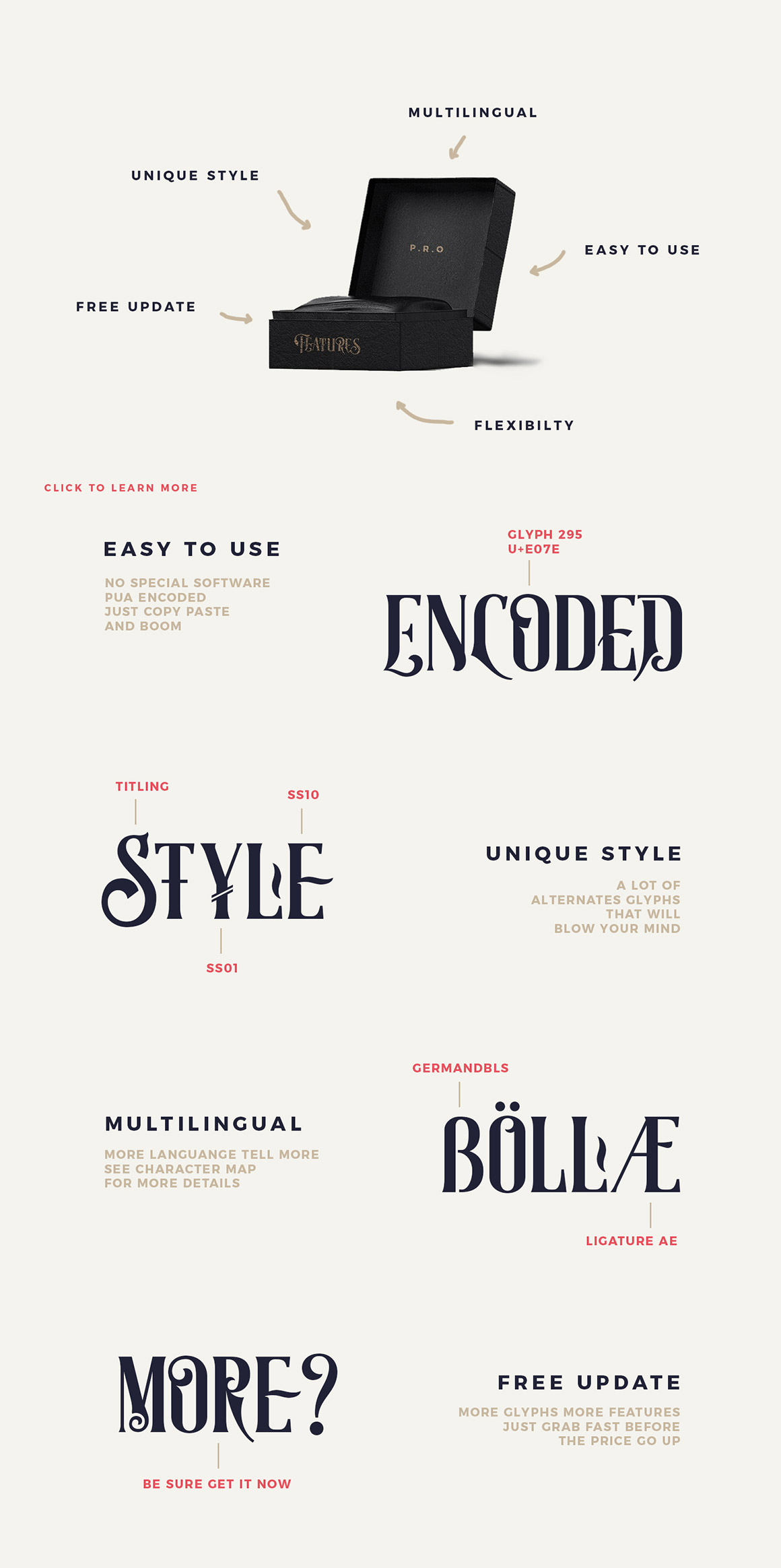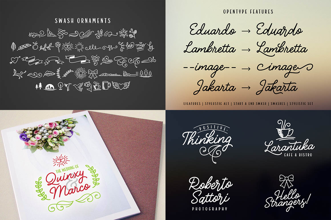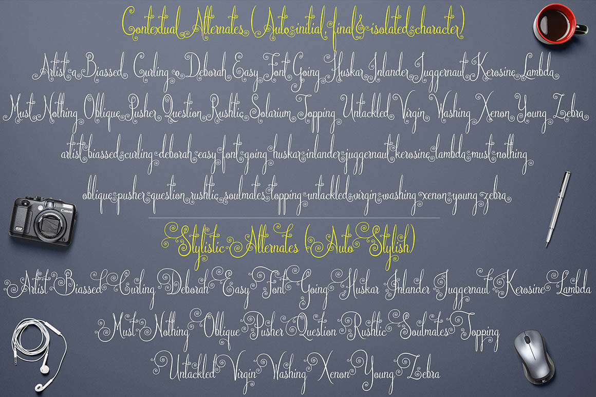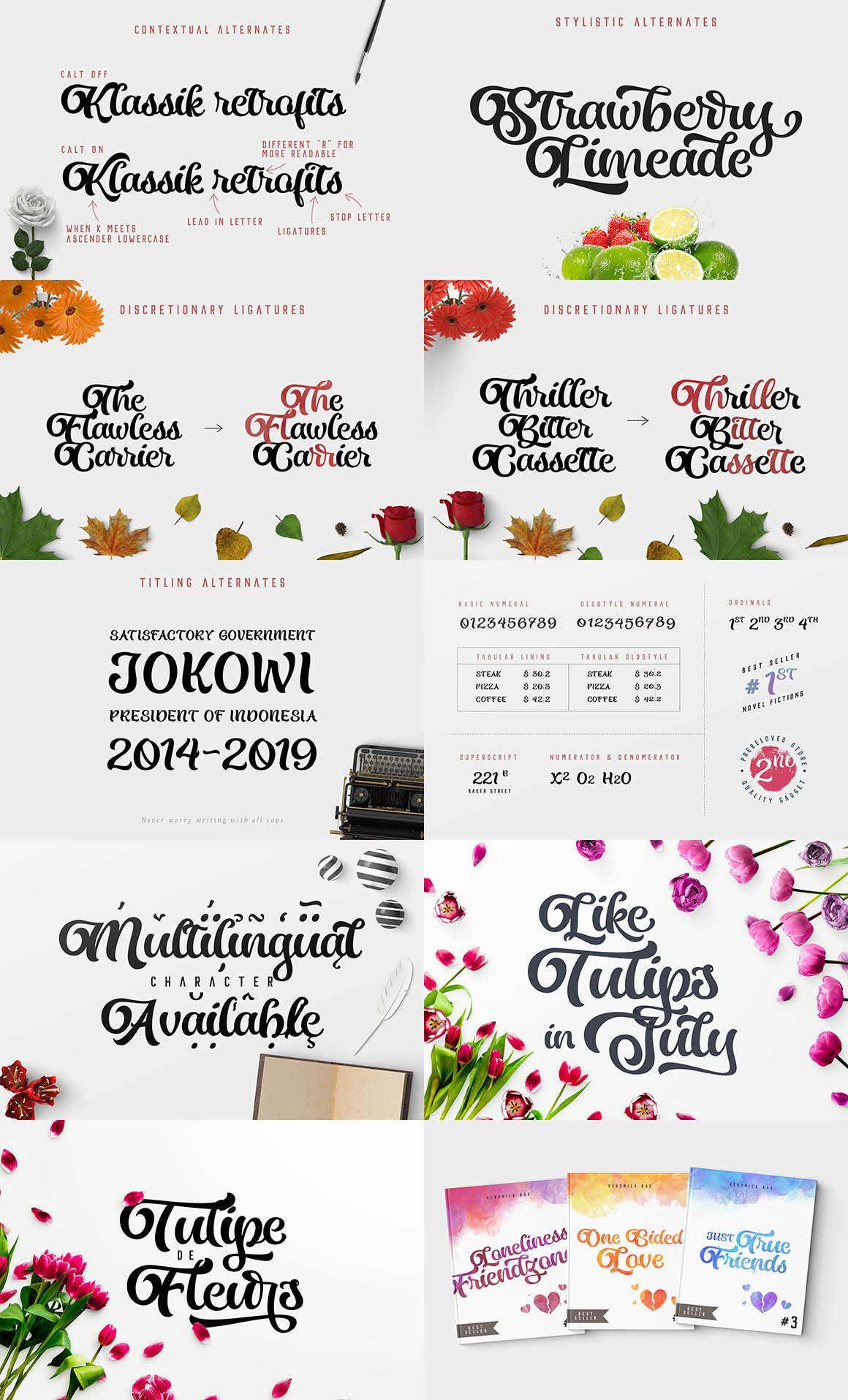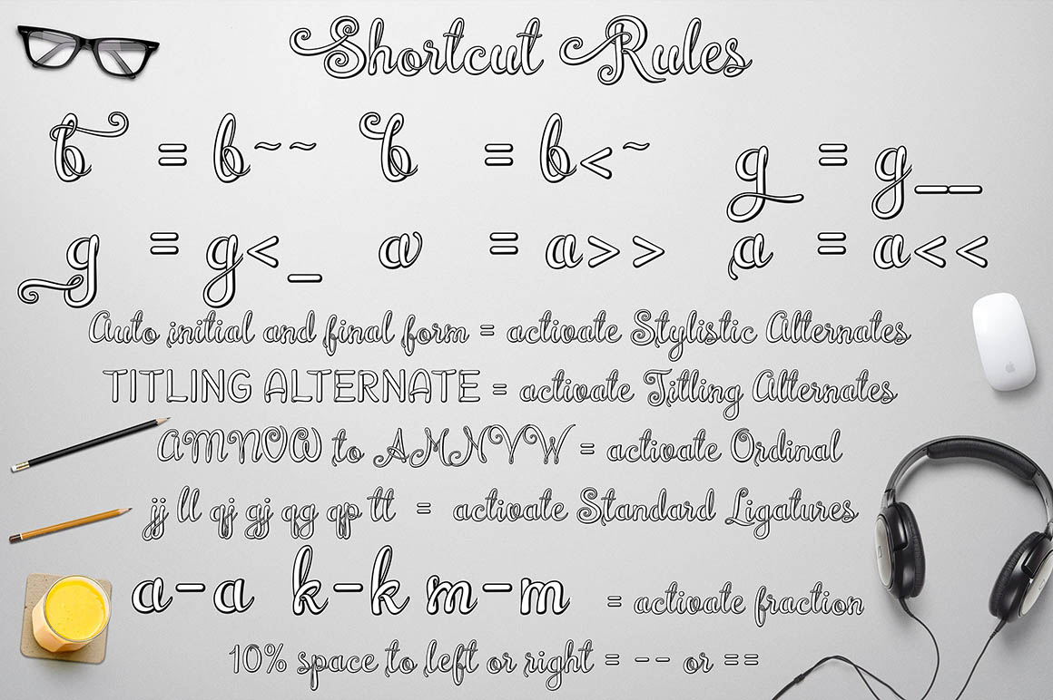 Please note that OpenType Features require a software such as Photoshop/ Illustrator CC.