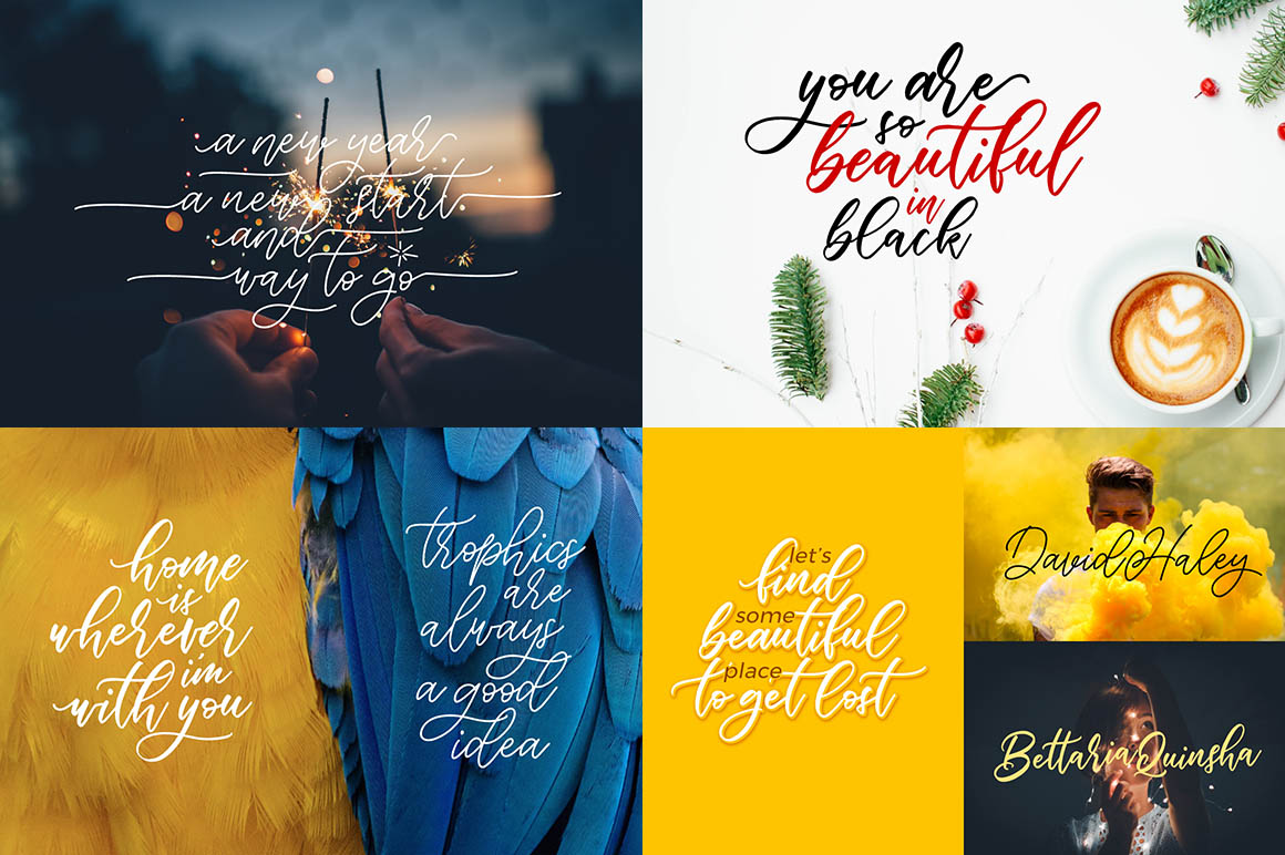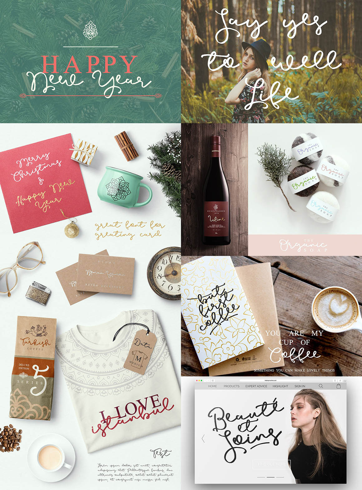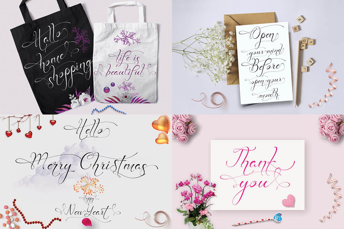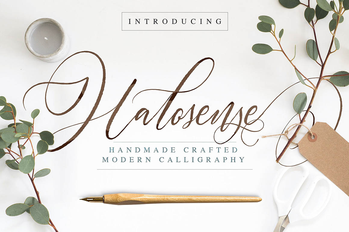 Introducing Halosense Handmade Crafted Modern Calligraphy. Referring from the product before called Octavia Script, this new modern calligraphy is more natural feel, handmade created with small touch of digital to make them flowing like a water on the river. 🙂 This fonts generating more features like CALT (Contextual Alternates), DLIG (discretionary ligatures), SS (Stylistic Set), INIT & FINA (initial and terminal) .