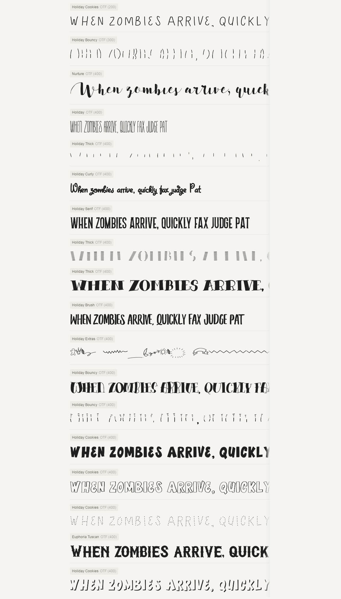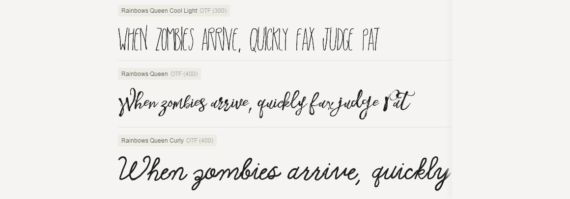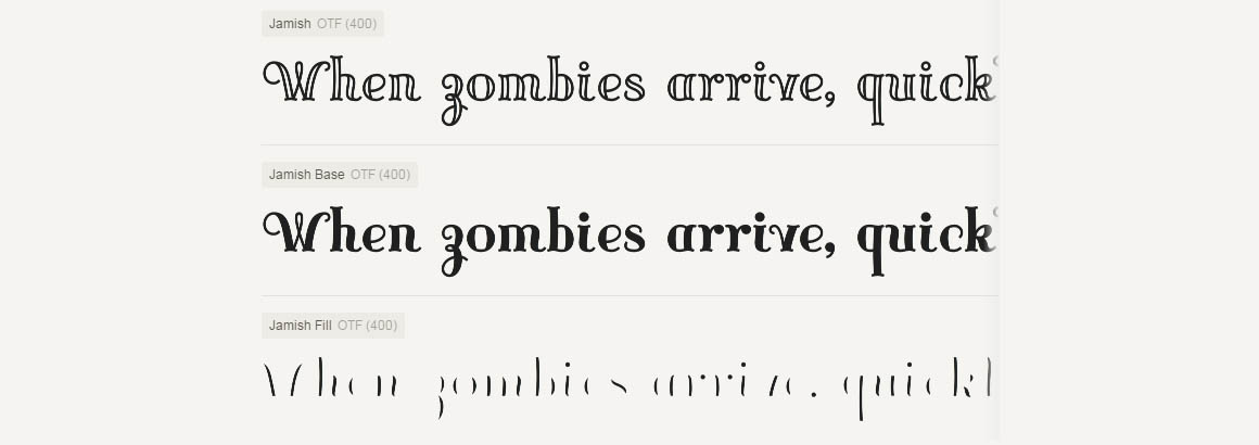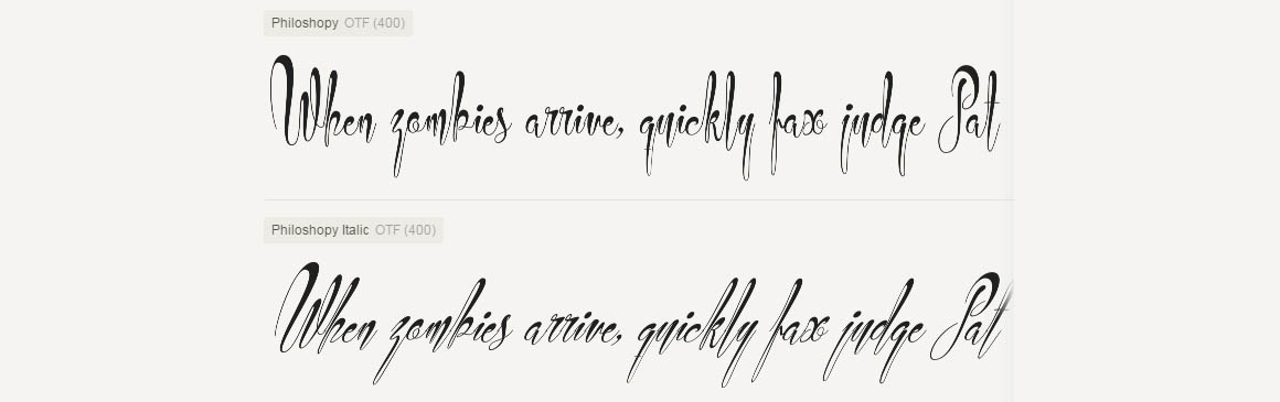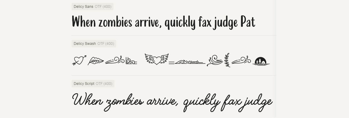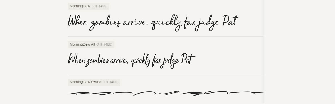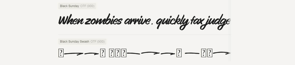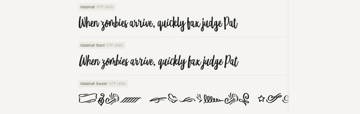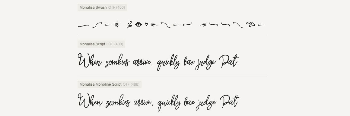 Ligature • discreationary ligatures can also be turned on in opentype software, so automatically switch standard letter into provided ligatures, refers to glyphs display to see availble ligature glyphs