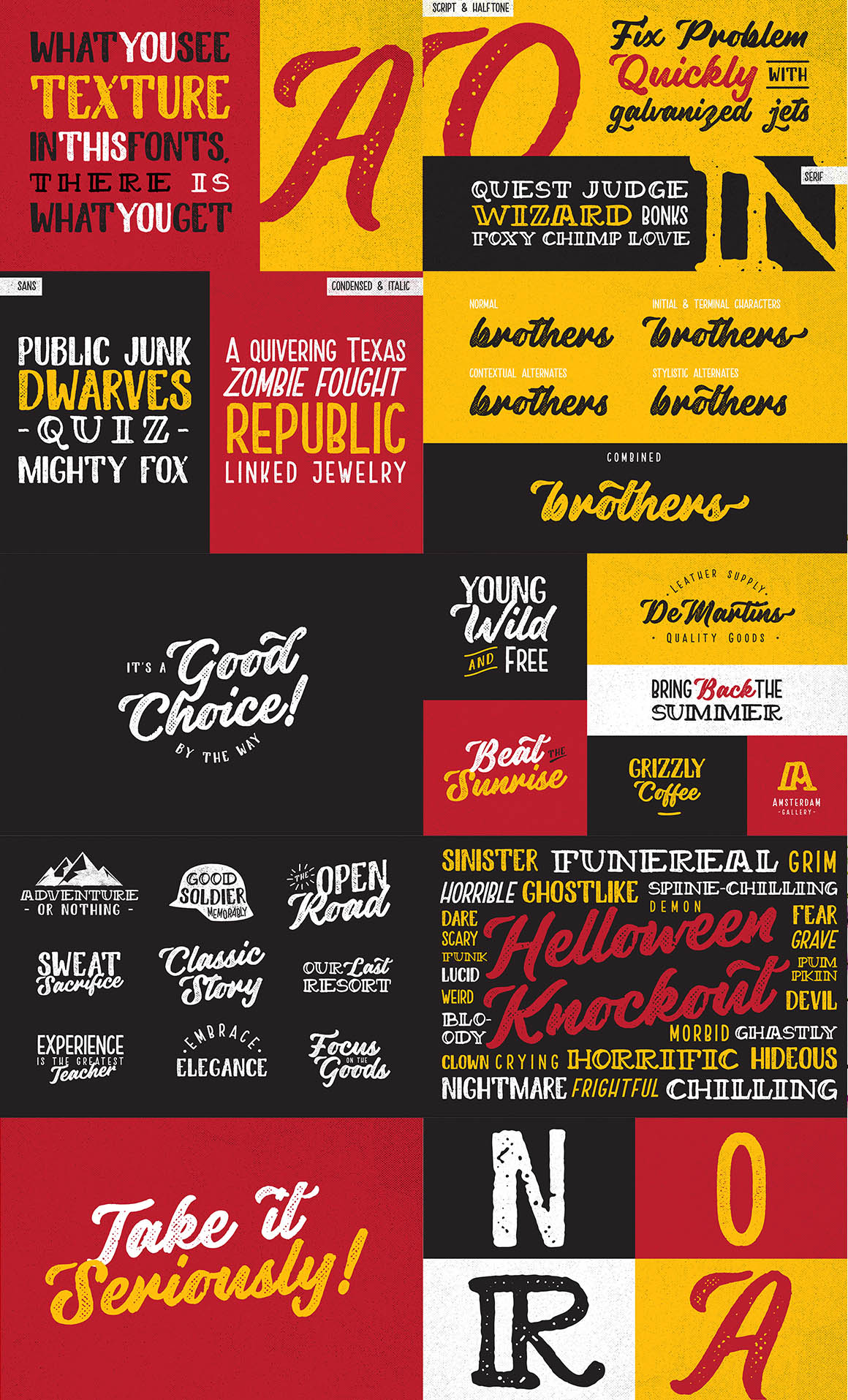 With a lot exploring the typographic design, content, and style. Most of them are created with the combinations of the typeface. Referring to the outdoor, vintage and old style design there so many great artwork with the textured typeface. So, I in collaborations with my friend choose the styling like this, without needed to add any rough filter effect. With takes a lot of time to create the Rough effect without entering the validations of error, because it’s very annoy to everyone who can’t install the fonts correctly. And I believe this fonts will not have the validation of error. Double checked. As on the Display, Lot of them are created with the solid background to pure showing the shape of the typeface, texture, and features.