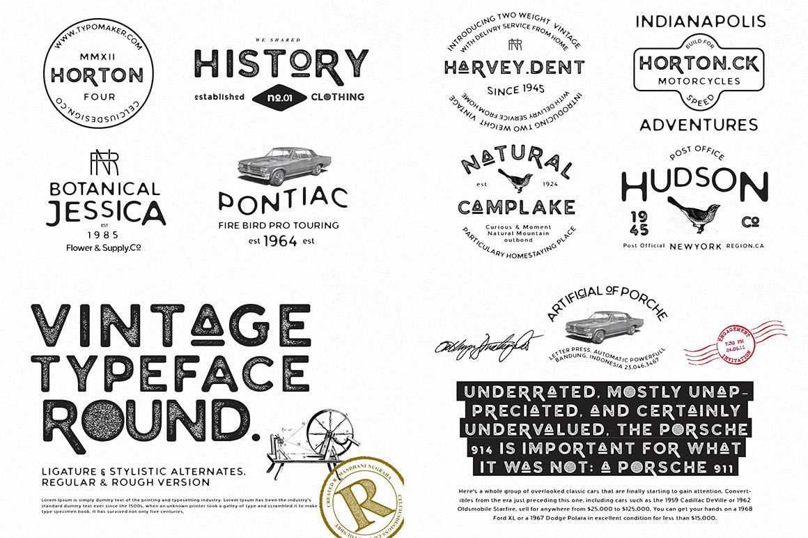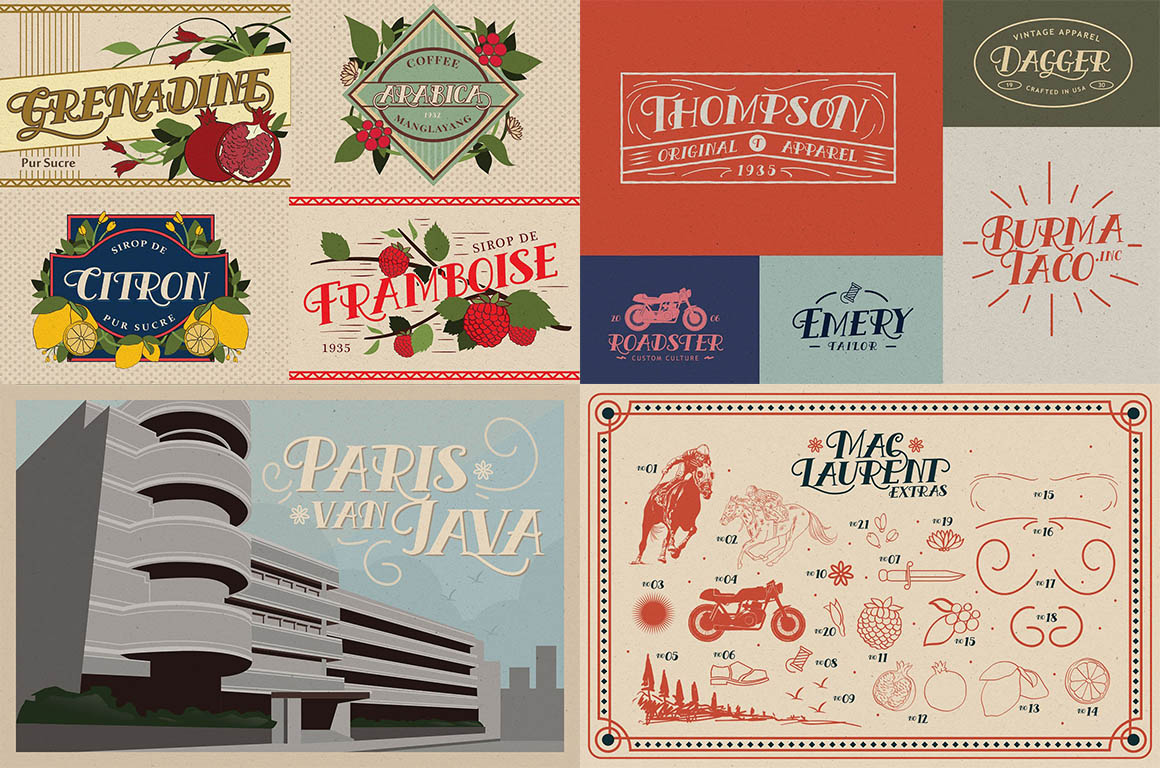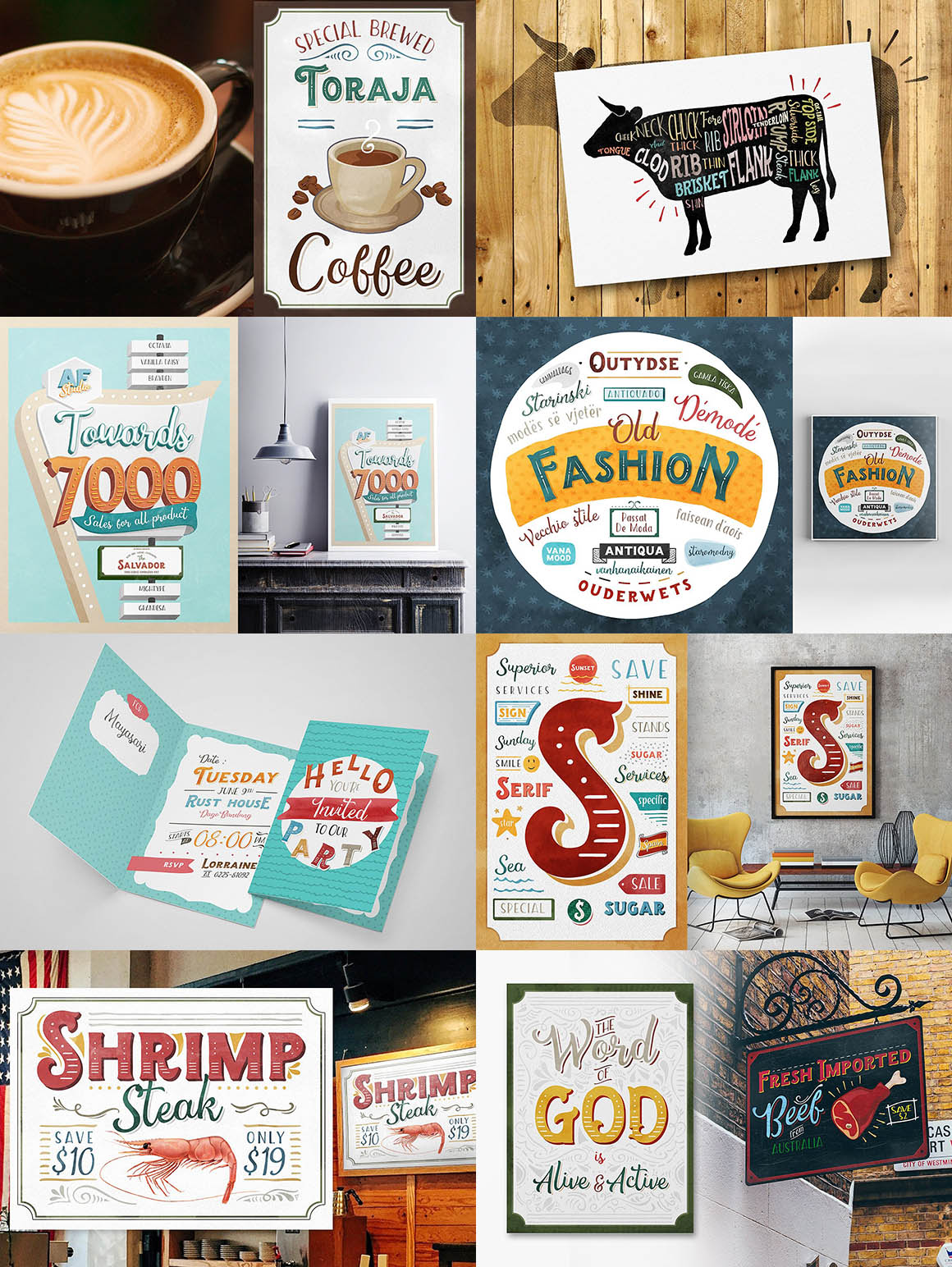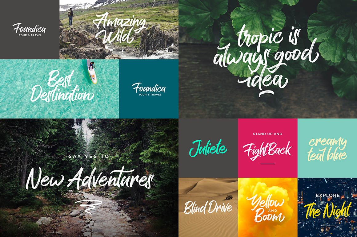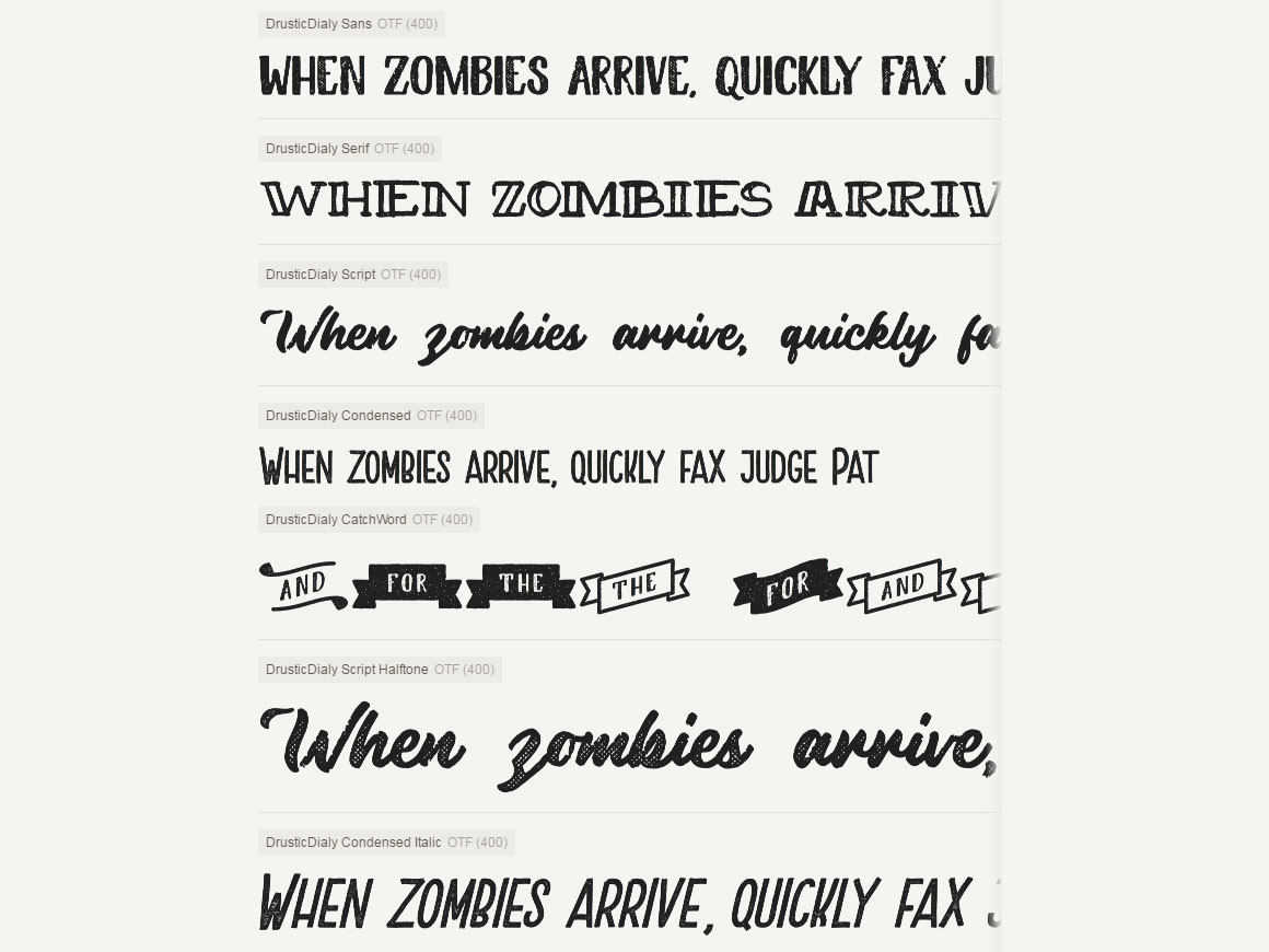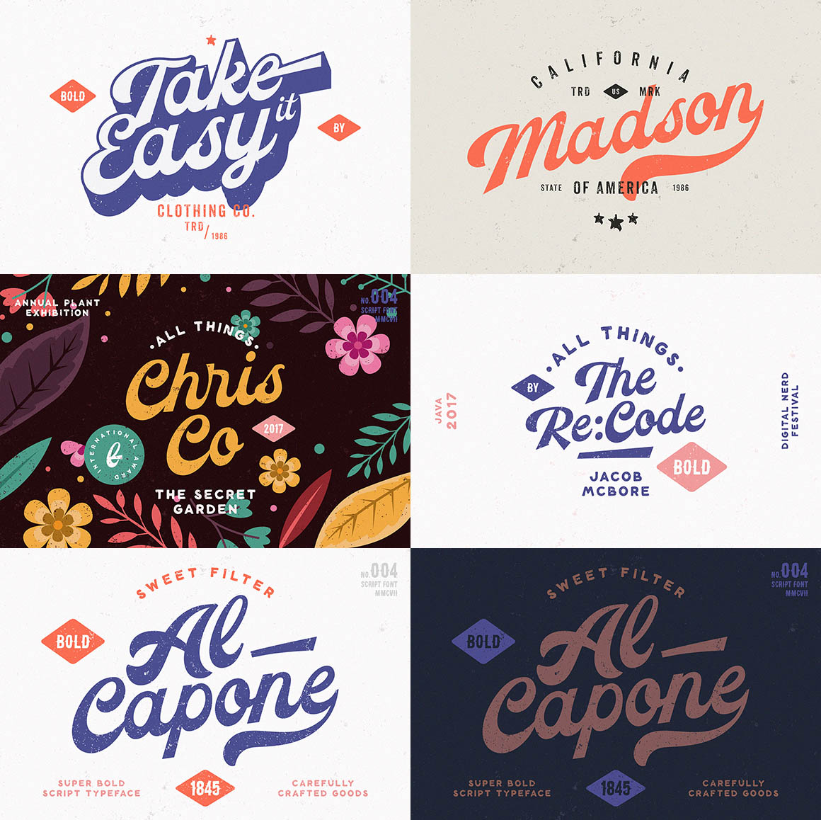 The Four Combinations, helps you to create the made a pair of your typography artwork, crisp, natural, and great combinations. Comes with the Serif Style, Sans Style, Condensed (also in italic), Script (Original and Halftoned texture) and the last is Catchword for complete the small pieces of artwork.