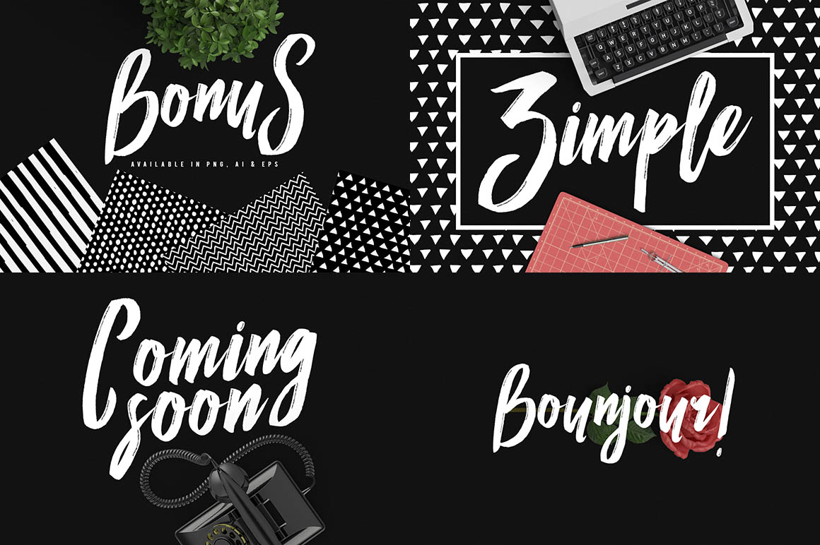 Brand new stylish versatile fonts ! In collaborating with Albion Room. Fresh from the oven as inspired to create easy digital lettering for you. Characters included more than 550+, check the display no 3. Also comes with lots of alternate characters lowercase and uppercase, ligatures, setting up for easy use on the initial and terminal forms. It will be great for Logotypes, Posters, Digital Lettering Arts, Clean design, Branding Design, Sign, etc.