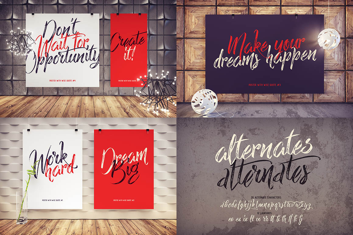 Hello! Presenting a calligraphic handcrafted font named “Limber”. It has 26 alternate glyphs, 12 ligatures and multilingual support. Also you will get 4 high quality renders of modern interior mockups in layered psd format.