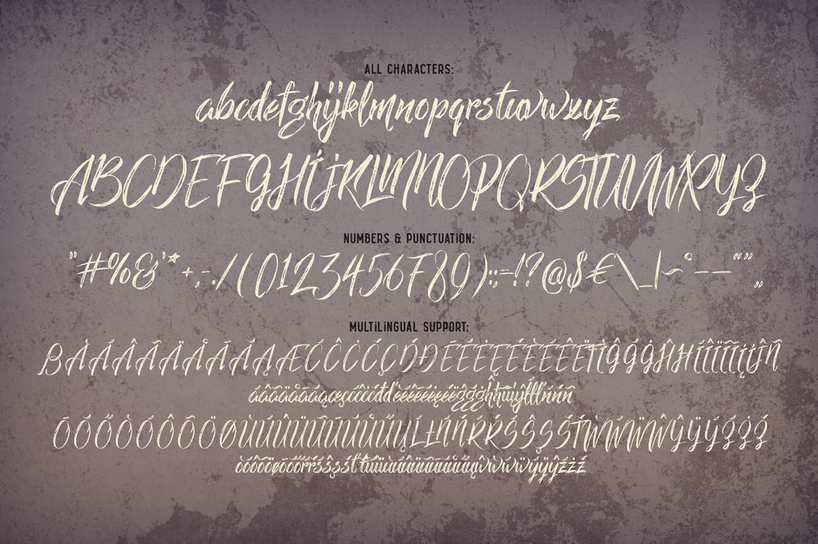 Brand new stylish textured fonts ! In collaborating with Albion Room. Fresh from the oven as inspired to create easy digital lettering for you. Flowing texture makes this fonts has a unique characteristic, also give you alternate characters lowercase and uppercase, alternate for the initial and terminal forms. It will be great for Logotypes, Posters, Digital Lettering Arts, Clean design, Branding Design, Sign, etc.
