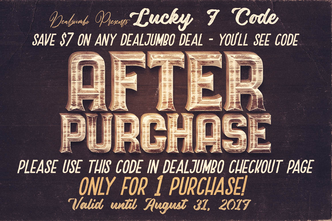 - Lucky 7 Discount Code – Save $7 on any future purchase on Dealjumbo (until August 31, 2017)