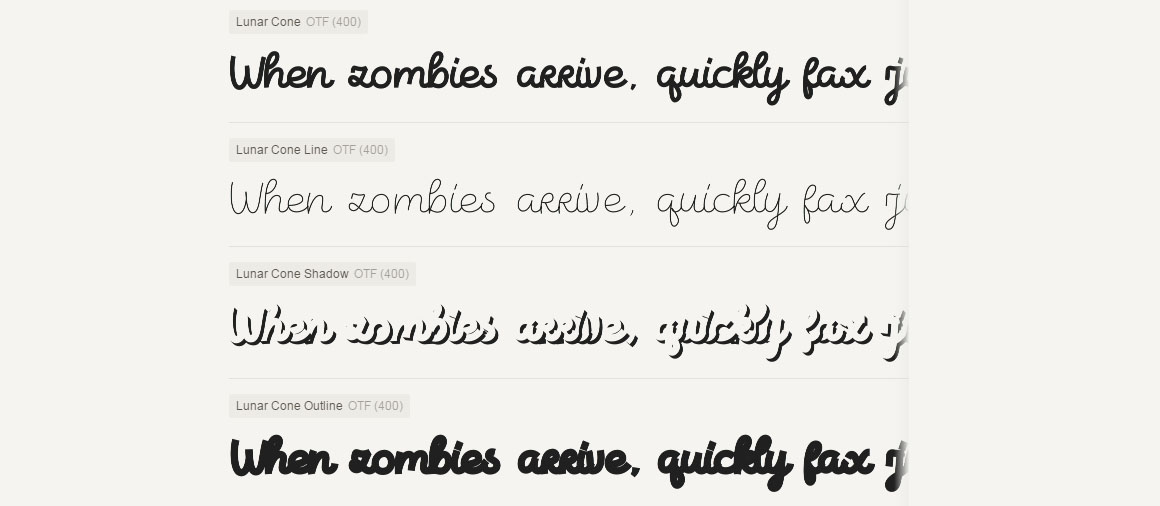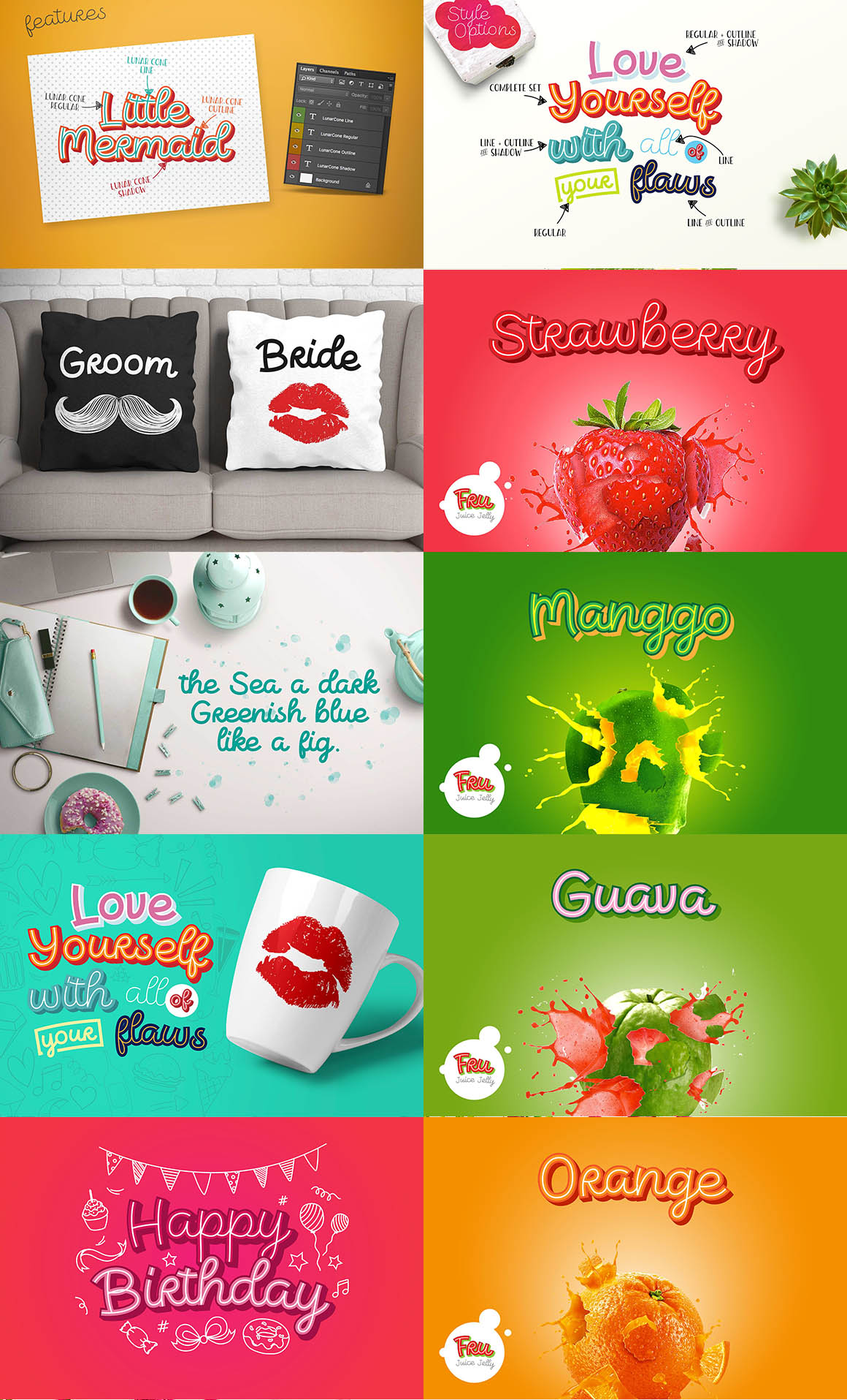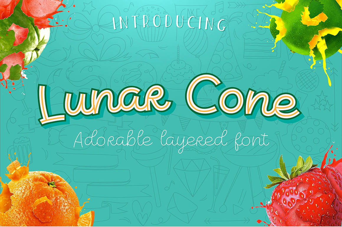 Comic, Silly and Cute design style are inspire me to create this Adorable fonts :). Creating with enjoyable on designing this fonts, so I create more layers to create more possibility for mix and match the style for your Adorable design. Styling on Lunar Cone gives you more options to choose the design style. Like on my display I create some in Vector based design style, on Mock up, or combinations. So the design make the impression to be Cute and Silly.