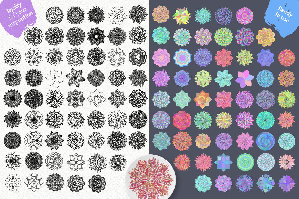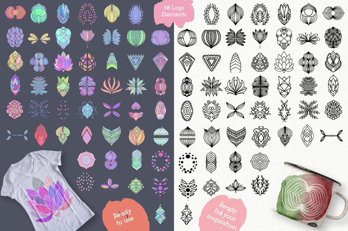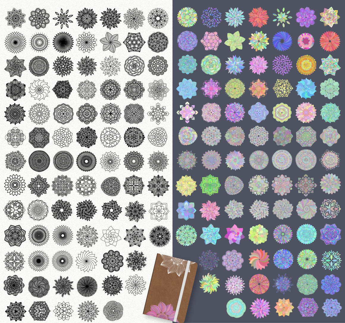 - MANDALA, MANDALA CIRCLES, MANDALA COLOR, MANDALA CIRCLE COLOR, LOGO ELEMENTS, LOGO ELEMENTS COLOR and ABSTRACT ELEMENTS [ All files are stored in 3 formats: AI, EPS and PNG. Each object is stored in an individual PNG file with transparent background ];