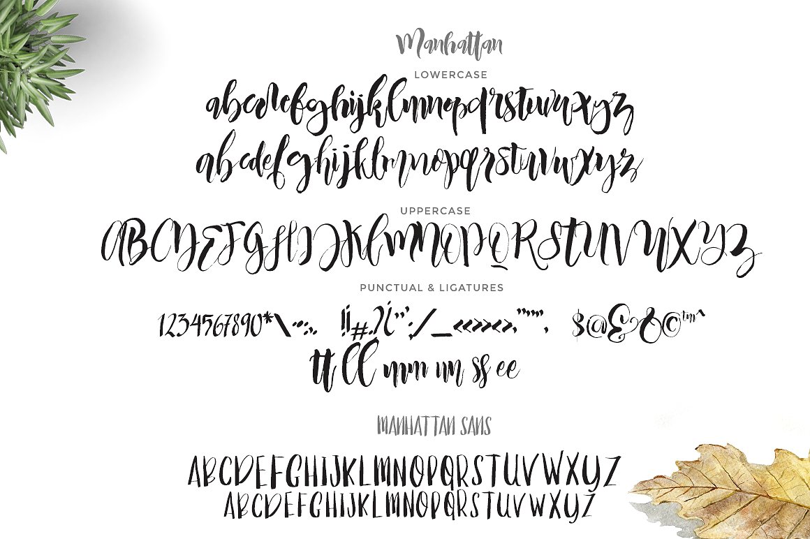 Introduce Manhattan Script, made handwritten script with authentic dry brush imperfections, lovable script come with 2 font combination, suitable for branding, quote, poster, product, packaging or bloging. Manhattan Main files which is 2 fonts: