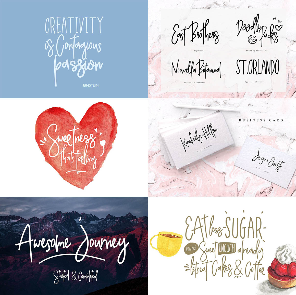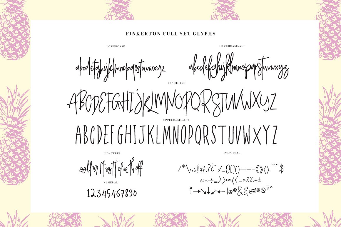 Pinkerton is a handwritten font duo, this font very easy to use and really playful, you can create lable, logo, create, book cover, poster, quotes poster etc. Just combine with doodling you can create some good designs. This font contains: