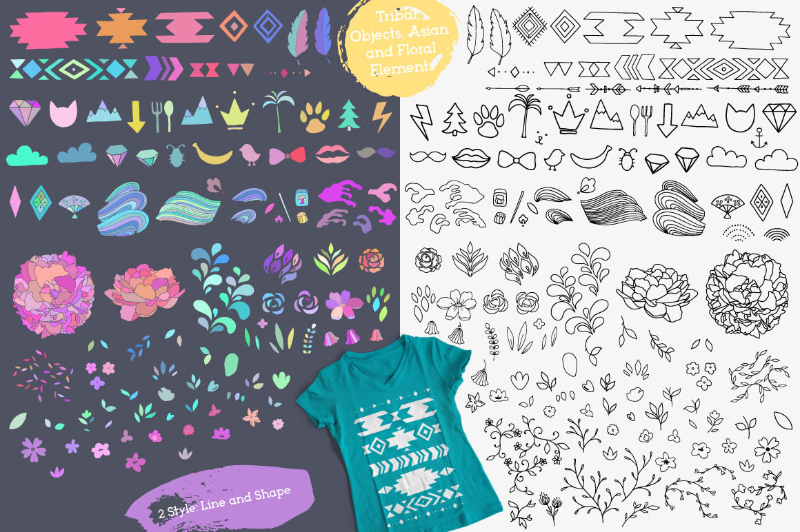 - ELEMENTS [ All files are stored in 3 formats: AI, EPS and PNG. Each object is stored in an individual PNG file with transparent background ];