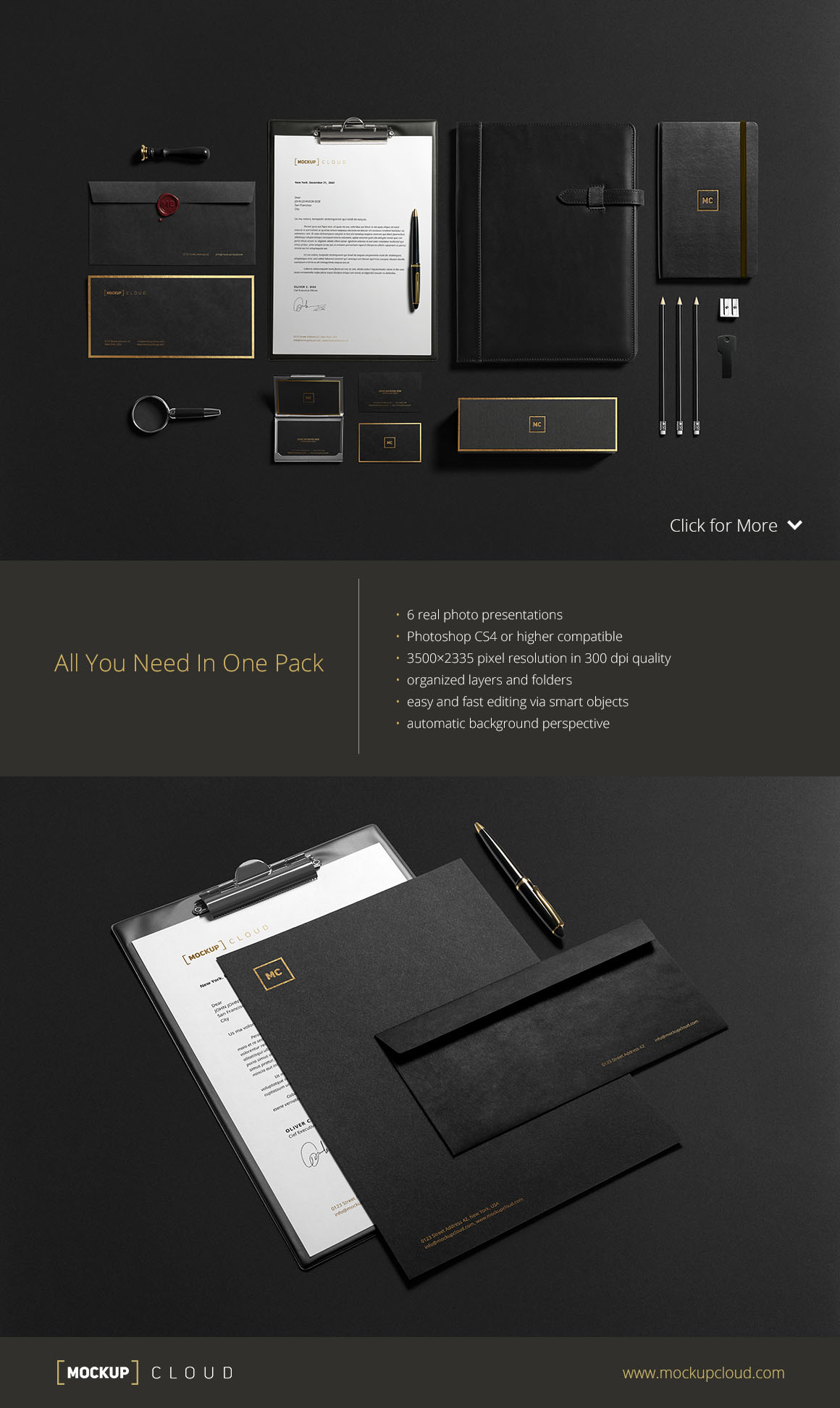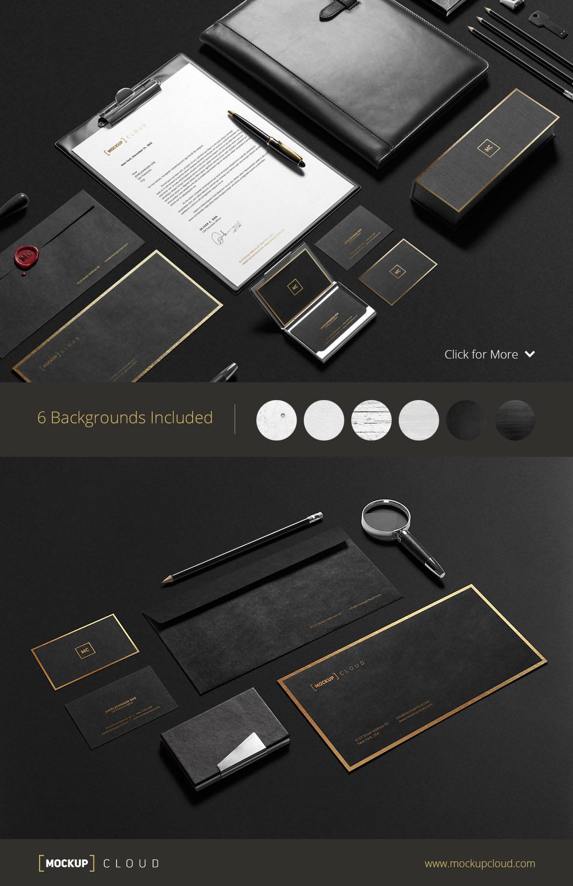 Gold, leather and premium black paper, all you need to make a feel of the premium brand. The set also includes 6 high-resolution background textures. Moreover, you have an option to apply gold or silver foil or just leave it as you like. Presentation never looked so perfect.