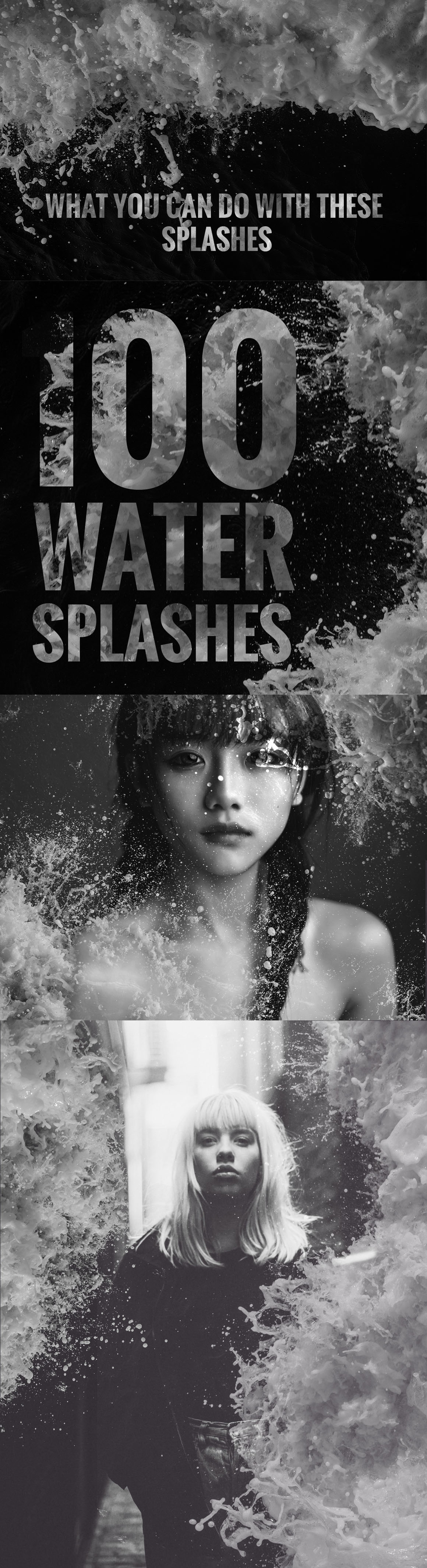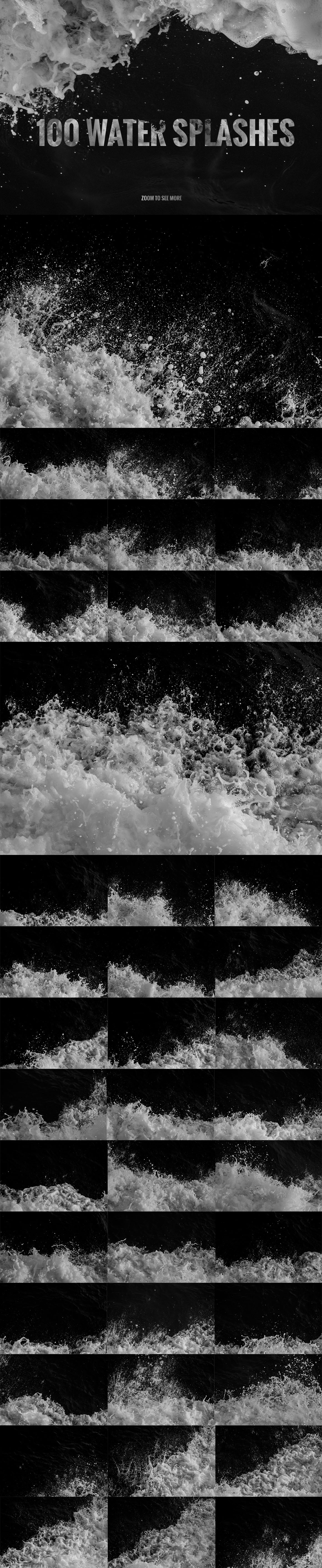 100 Water Splashes. These textures are perfect for your backgrounds. Also you can easily create cool double exposures. This product includes 100 water splashes textures. 4928×3264 px 300DPI