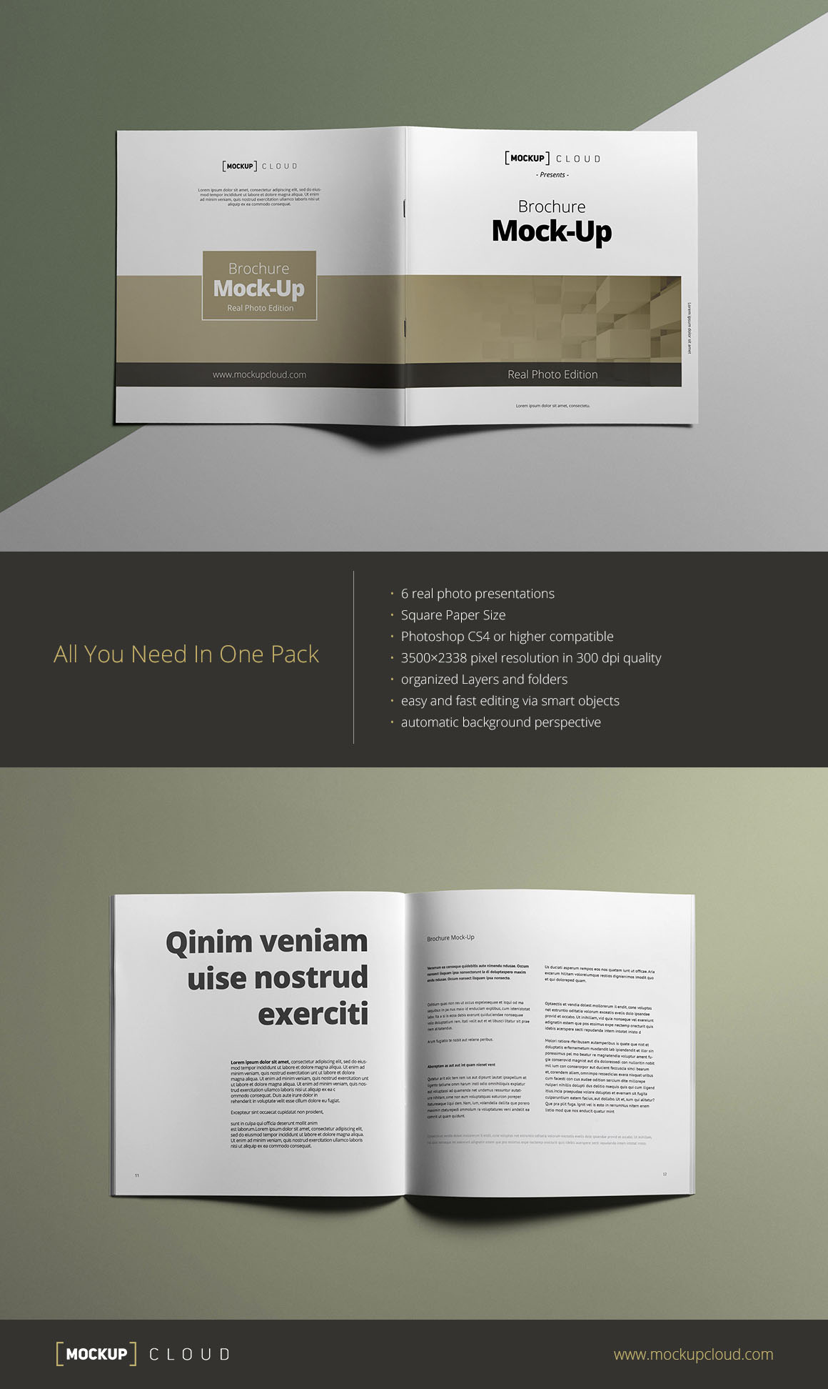 Save time and make your brand look eye candy with this real photo square brochure mock-up. Easy to place your designs using smart objects, double-click the Smart Layer, copy & paste your artwork, save and you’re done!