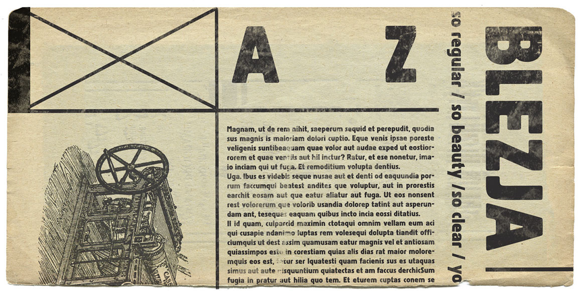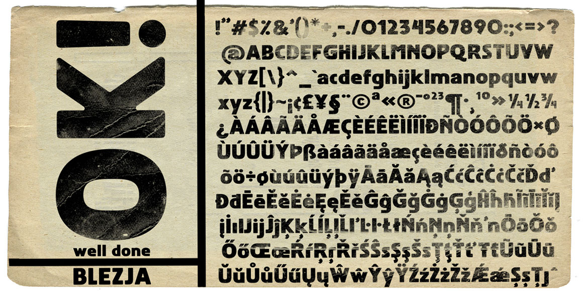 To design a font Blezja, I was inspired by an old metal tin from 1907 from Potsdam, which was used to store earplugs. From a few letters I created whole typeface – lower and uppercase characters.