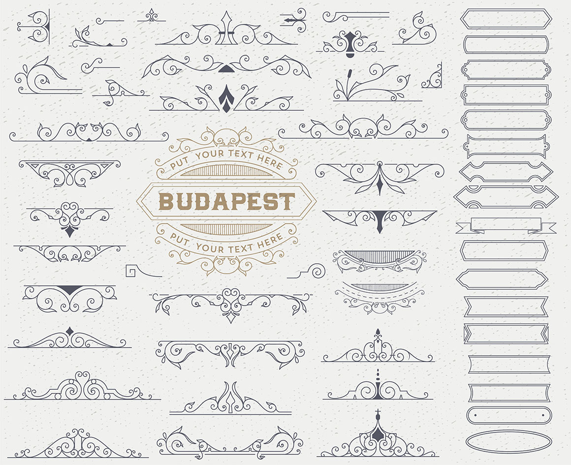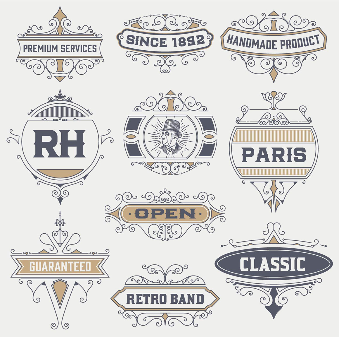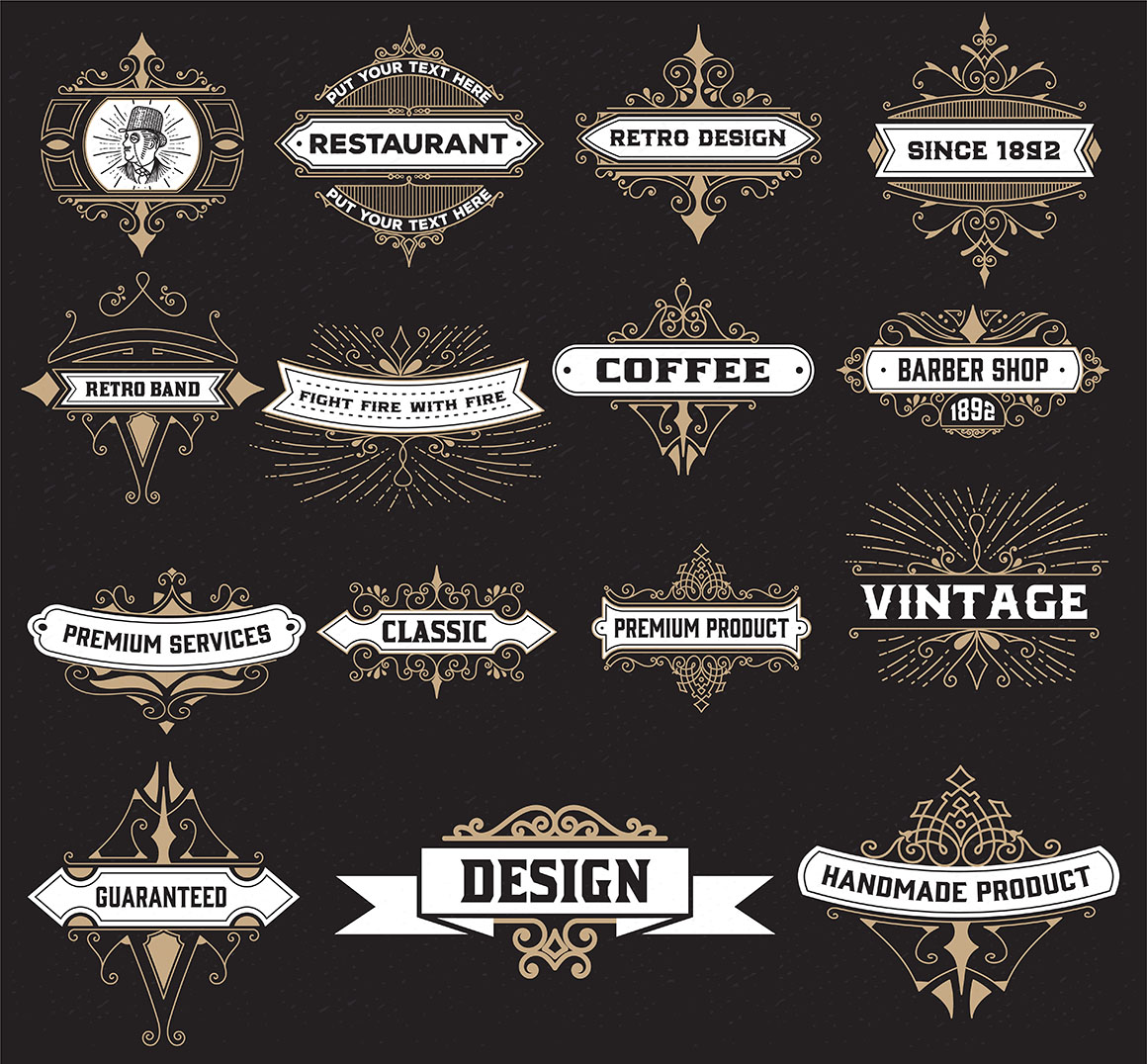 Kit of Vintage Elements for Invitations, Banners, Posters, Placards, Badges or Logotypes.