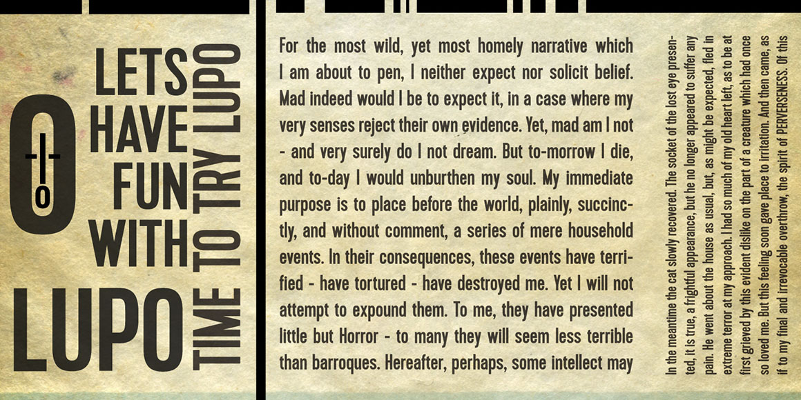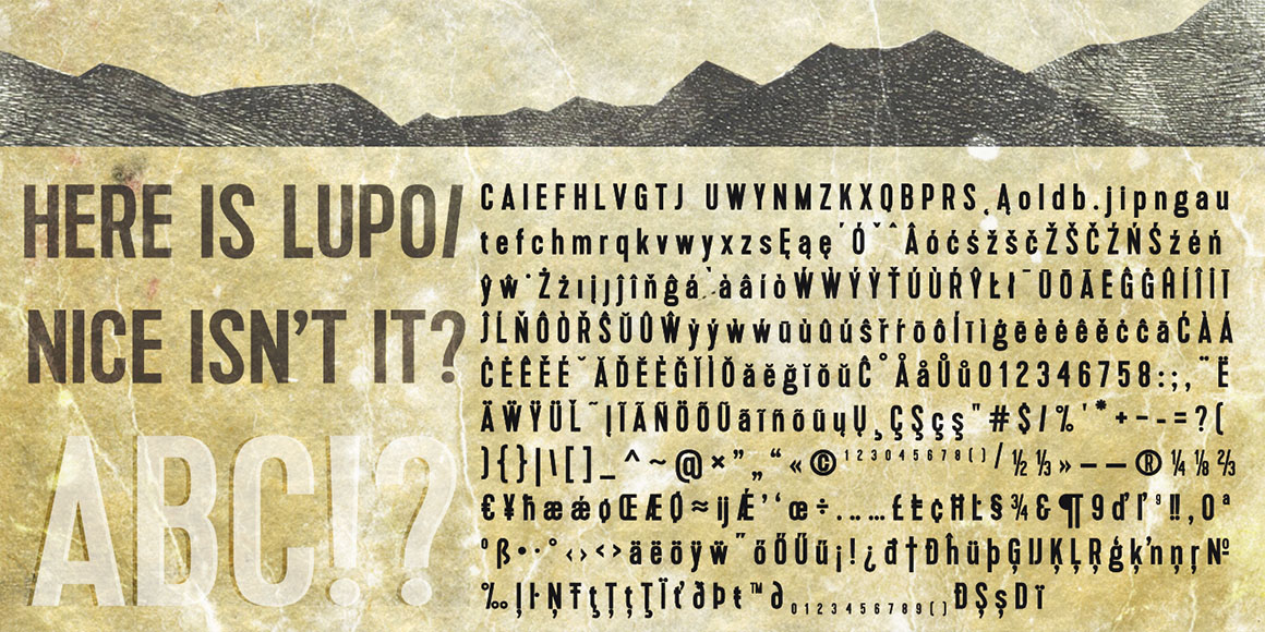 Font Lupo is the younger brother of Kapra. However, unlike Kapra it is characterized by the sharpness of the finish. It is inspired by a You And Me Monthly published by National Magazines Publisher RSW „Prasa” that appeared from Mai 1960 till December 1973 in Poland. Font Lupo is designed in one version – lower and uppercase characters.