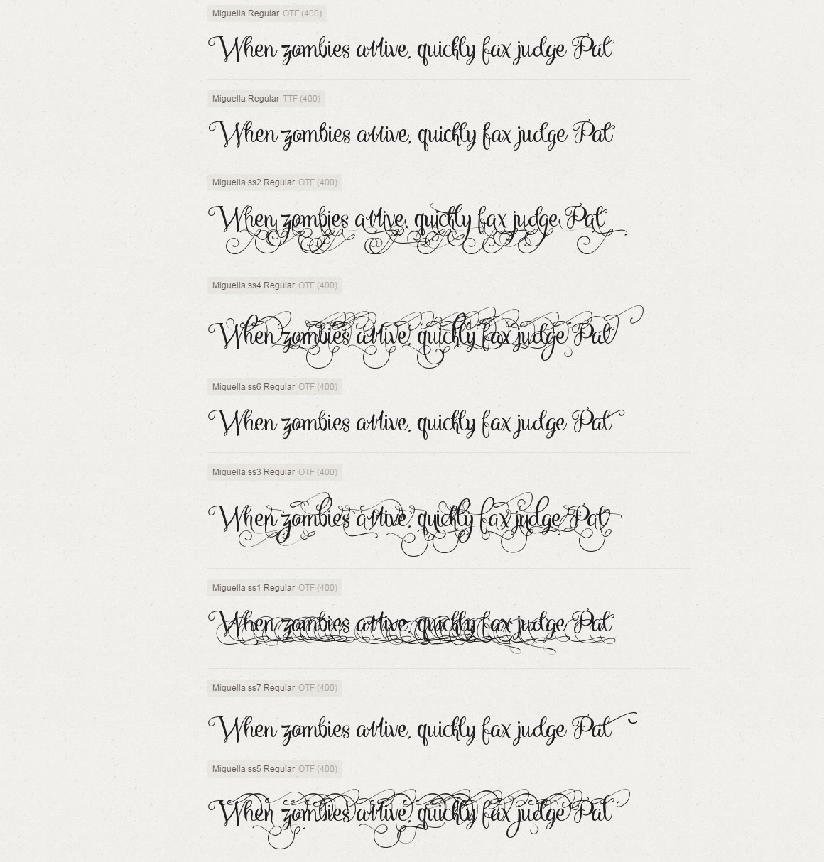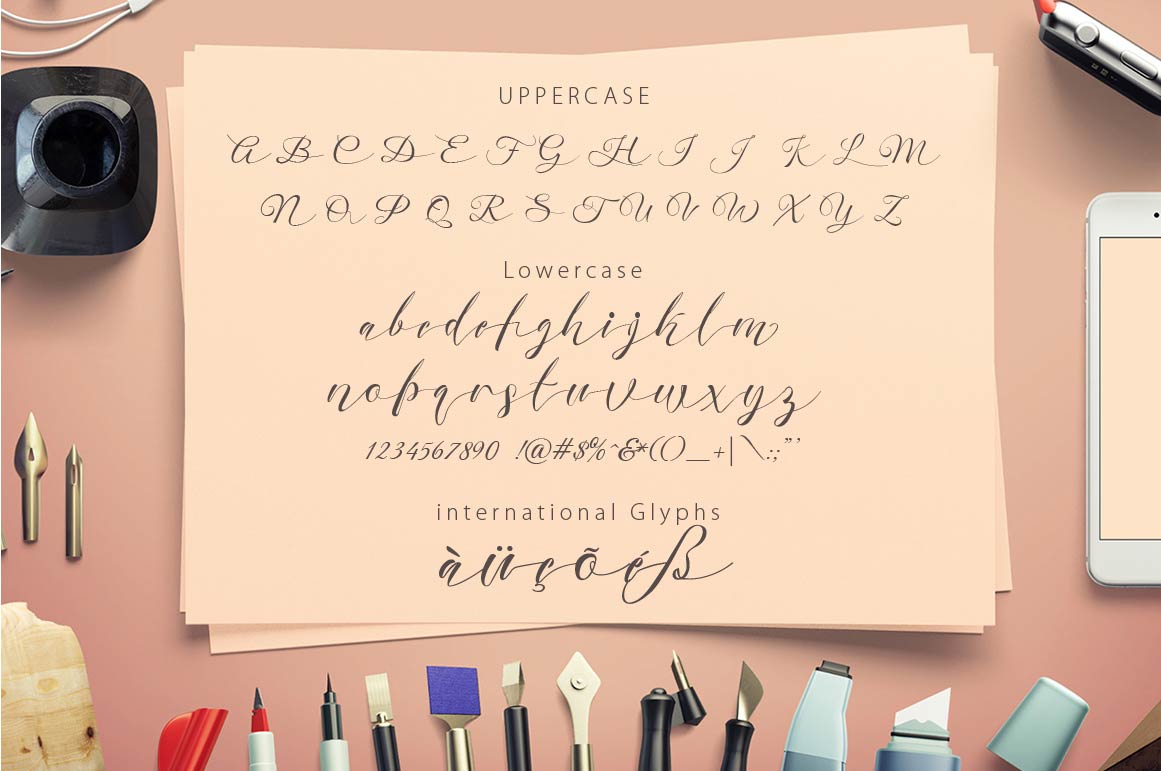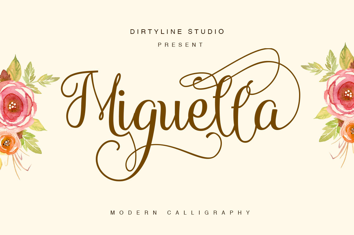 Miguella is a creative script typeface with beautiful calligraphy and modern style. Features : Initial Alternates, Terminal Alternates, Standard ligatures, Stylistic sets, Basic Latin A-Z and a-z, Numbers, International Symbols include.